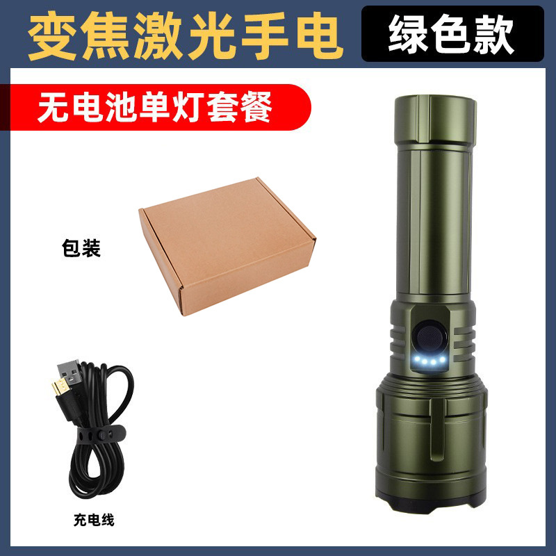 새로운 손전등 국경 간 강한 빛 손전등 TYPE-C 백색 레이저 장거리 알루미늄 합금 야외 순찰 손전등