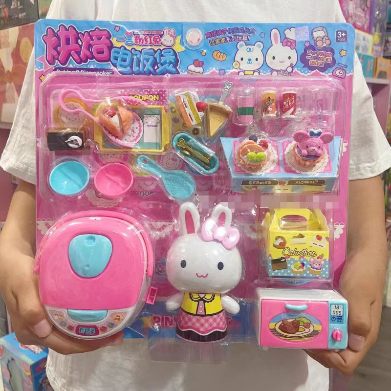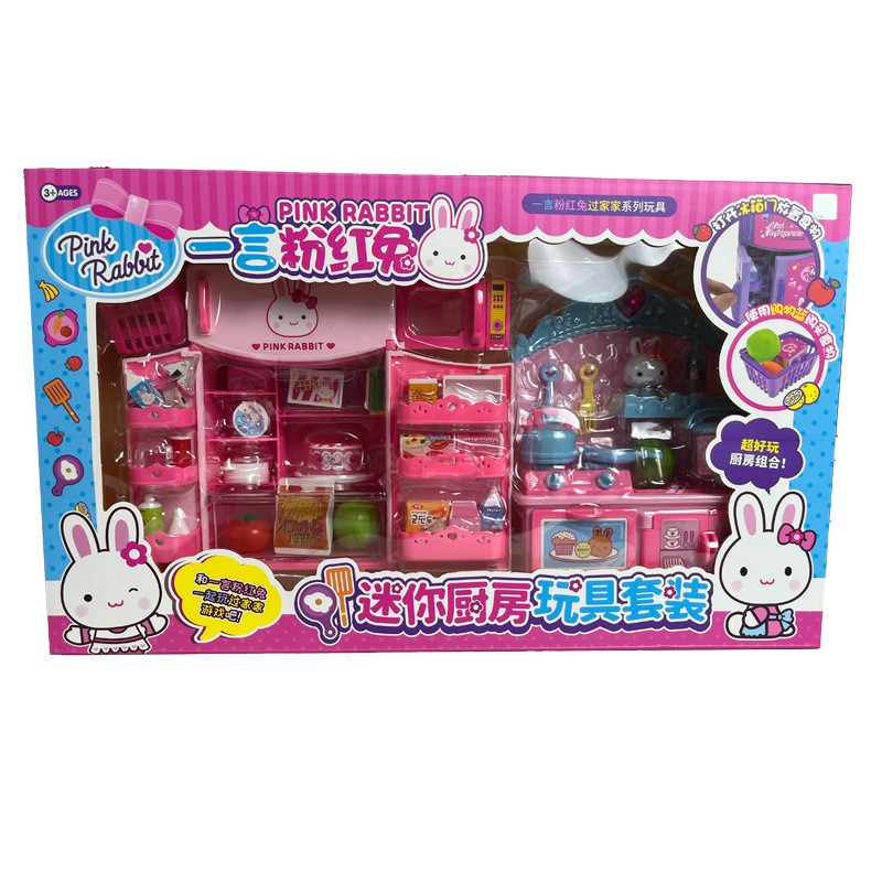 작업 핑크 놀이 집 장난감 보관 가방 소녀 휴대용 어린이 메이크업 상자 토끼 시뮬레이션 메이크업 테이블스토어 가기