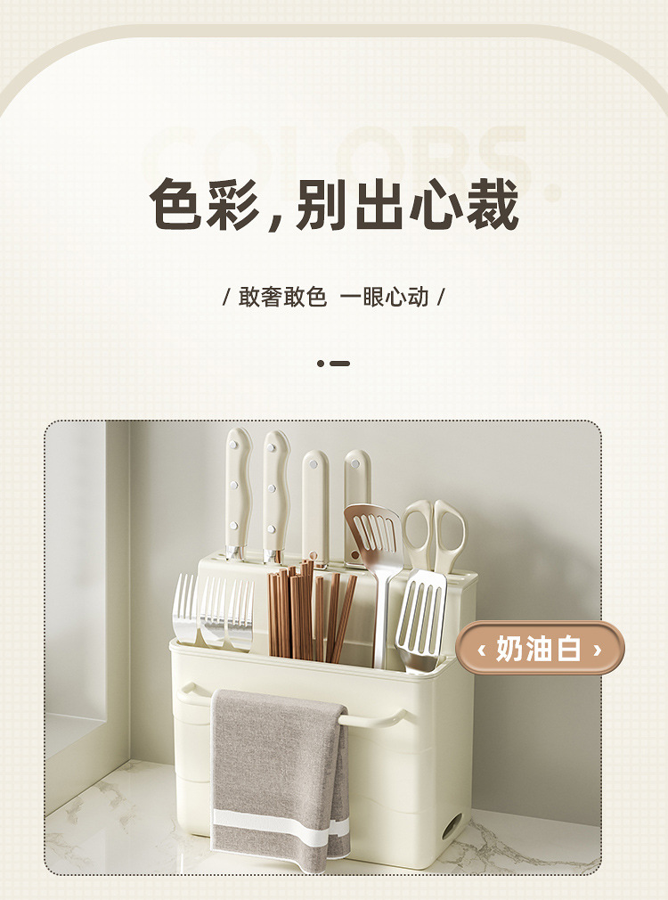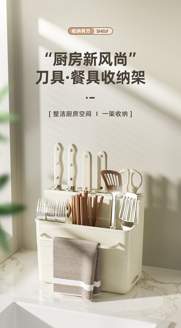 • 플라스틱 칼꽂이 일체형 수납함 - 밀크 화이트