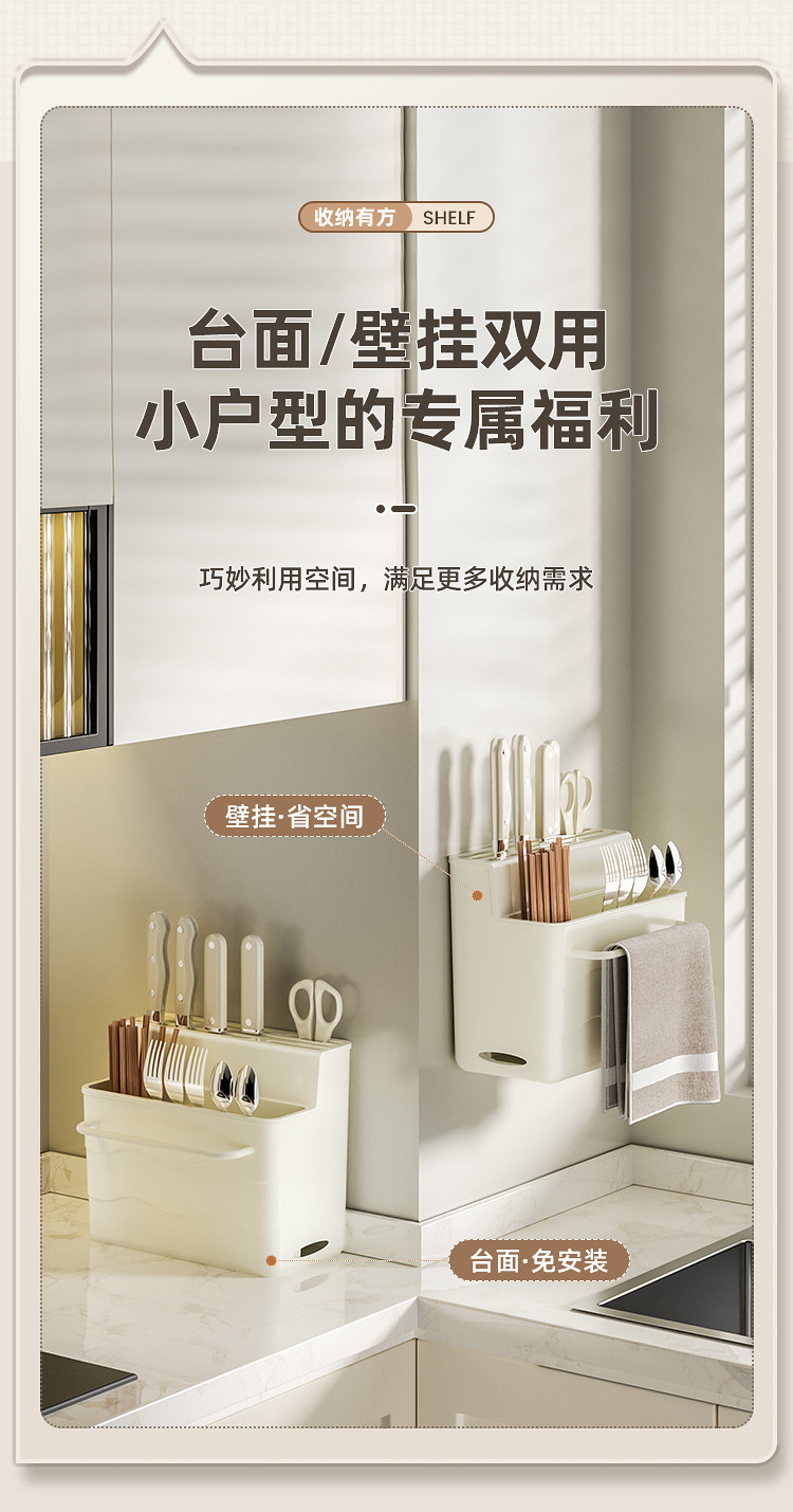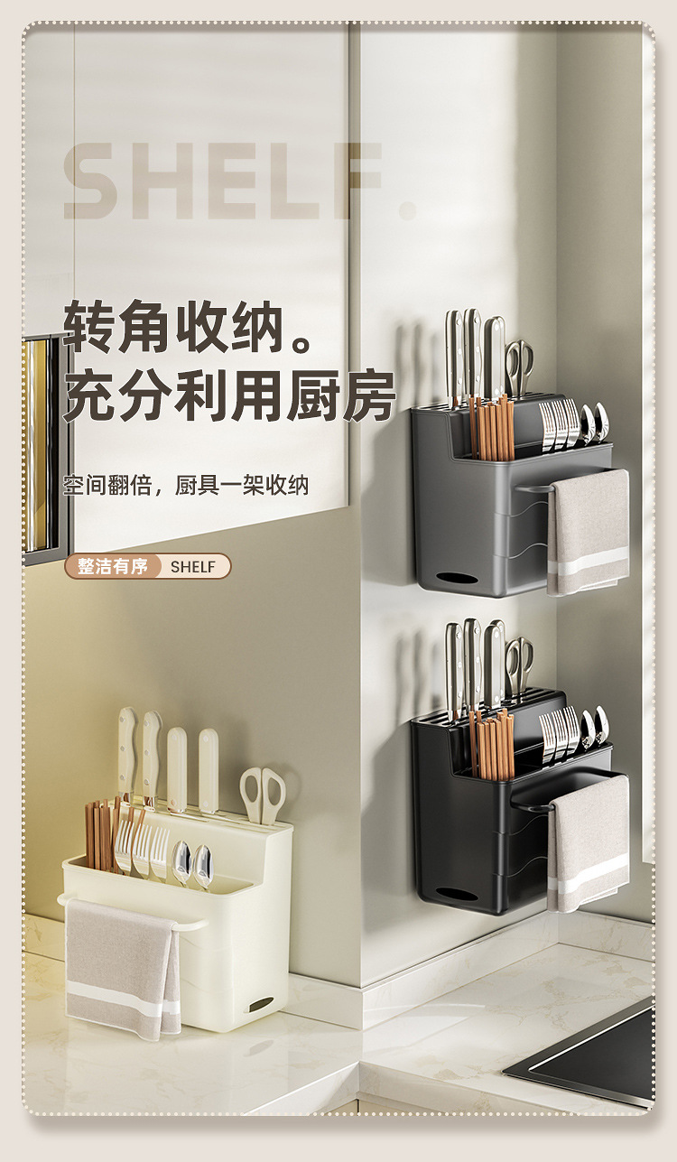 다기능 칼꽂이 수납선반 주방칼 벽걸이형 수납선반 조리대 칼꽂이 고기칼꽂이 젓가락 수납함