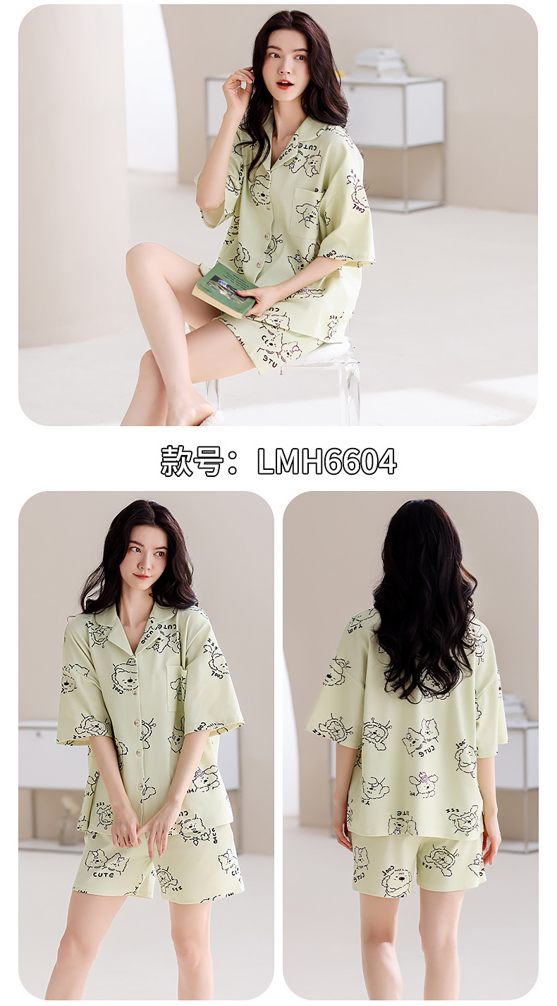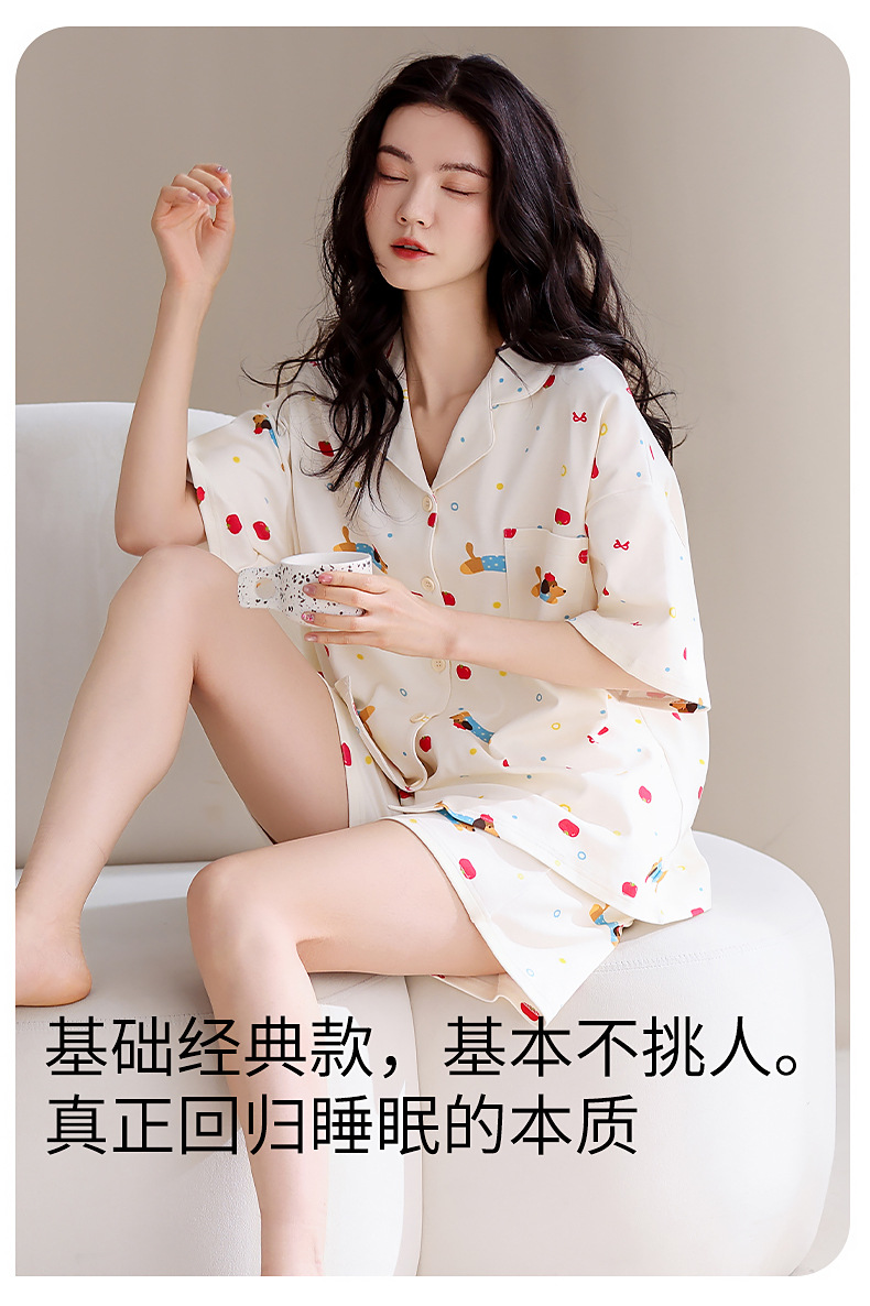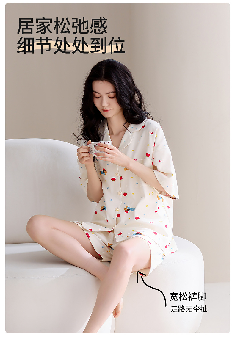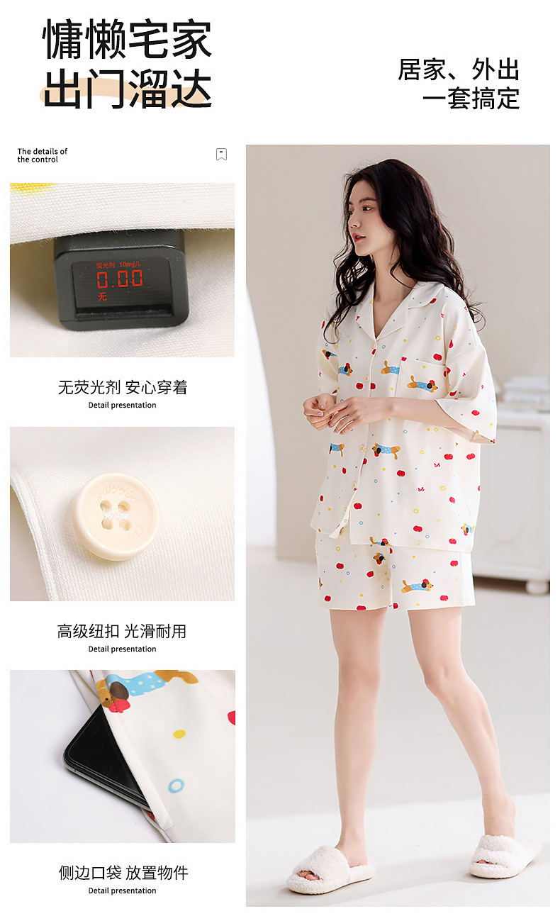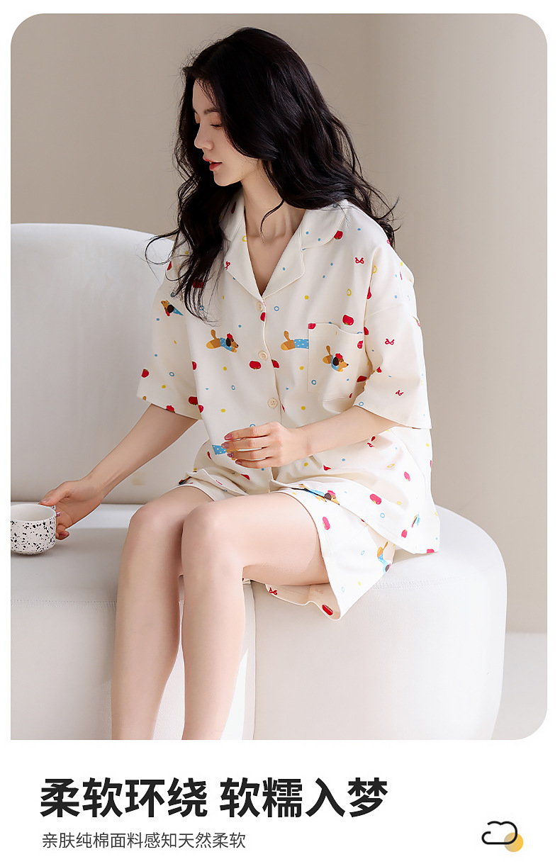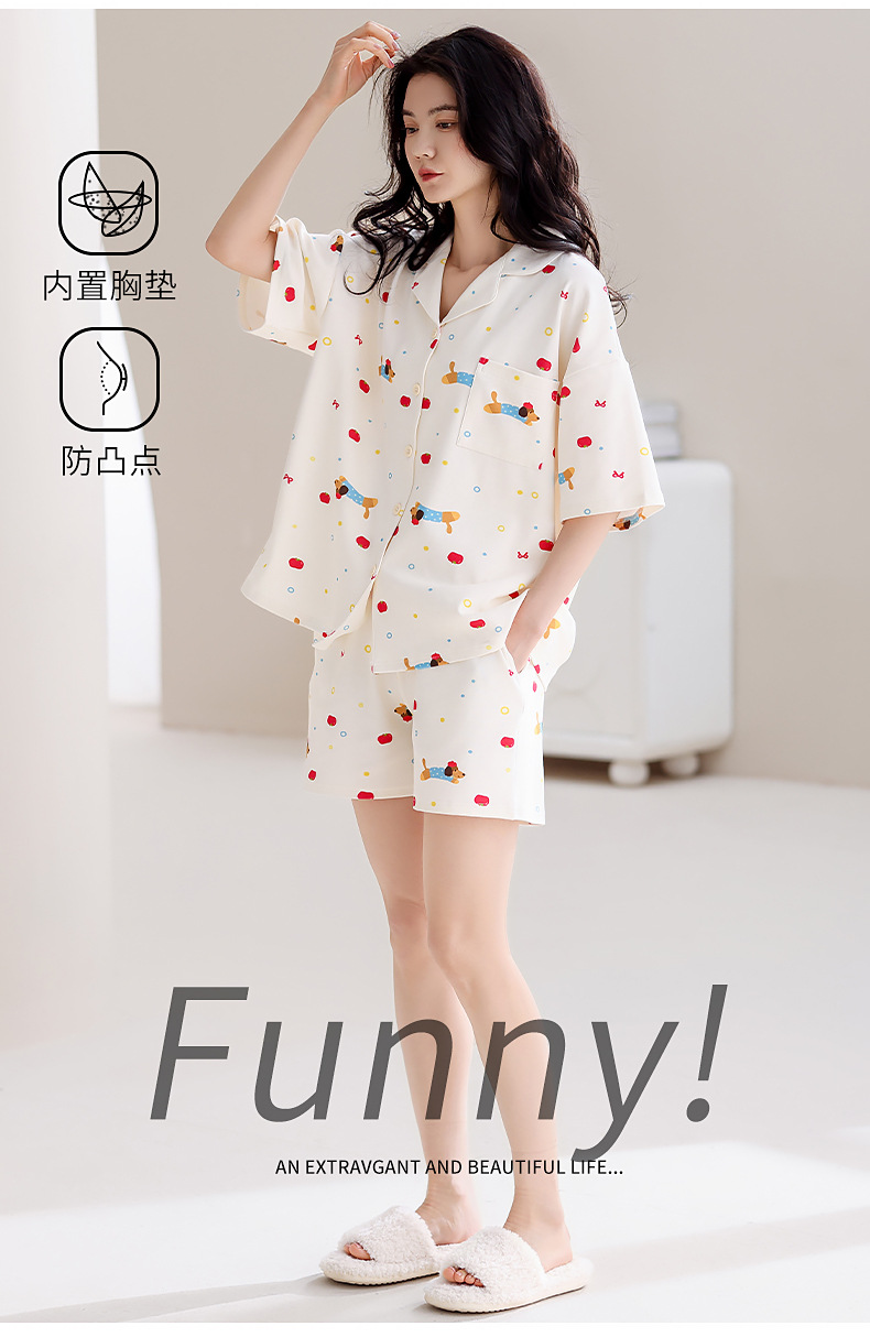 가슴 패드가 있는 여름 여성용 순면 잠옷 반팔 반바지 2025 새로운 스타일은 귀여운 가정복 세트 여름 외부에서 착용 가능스토어 가기