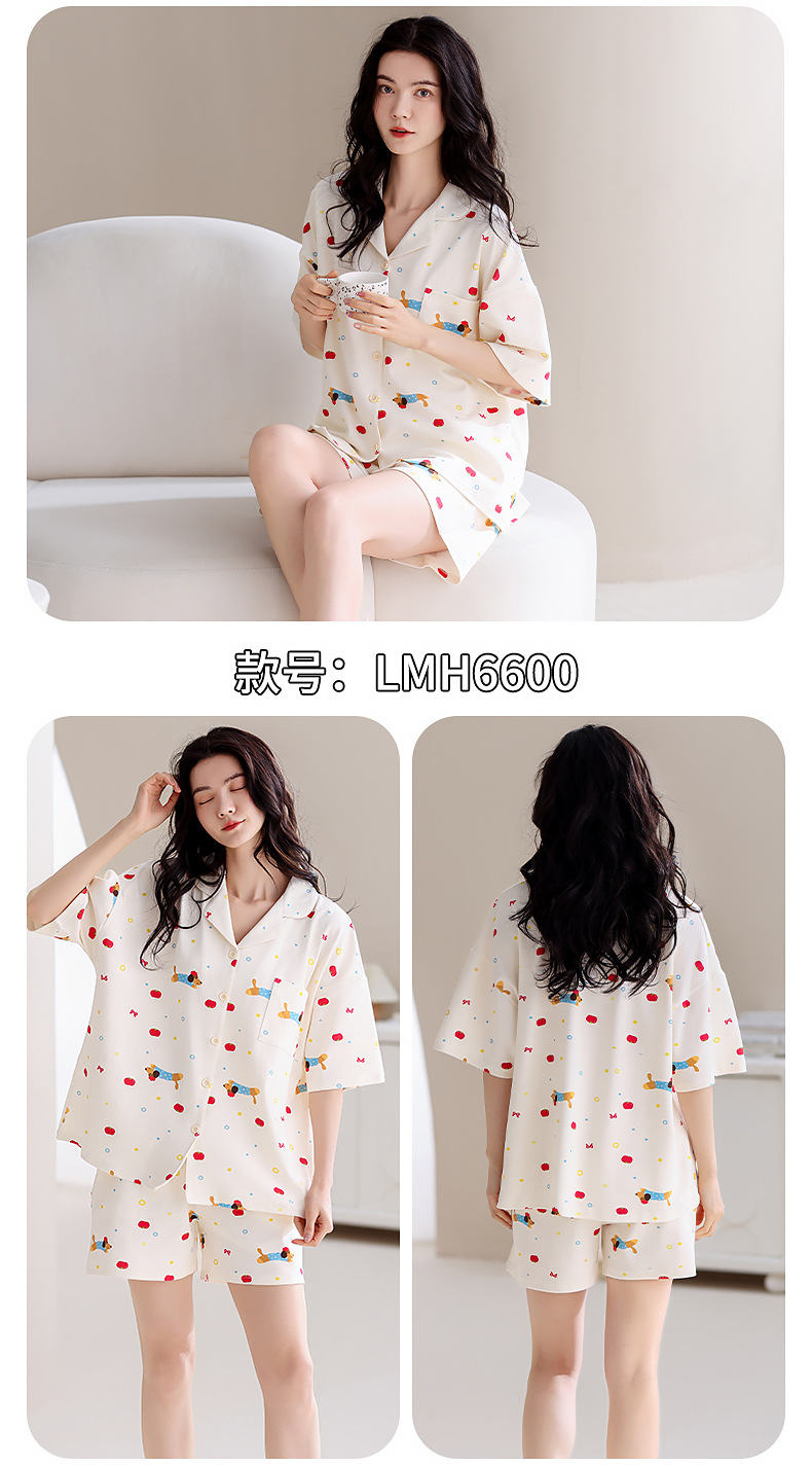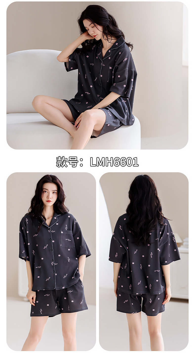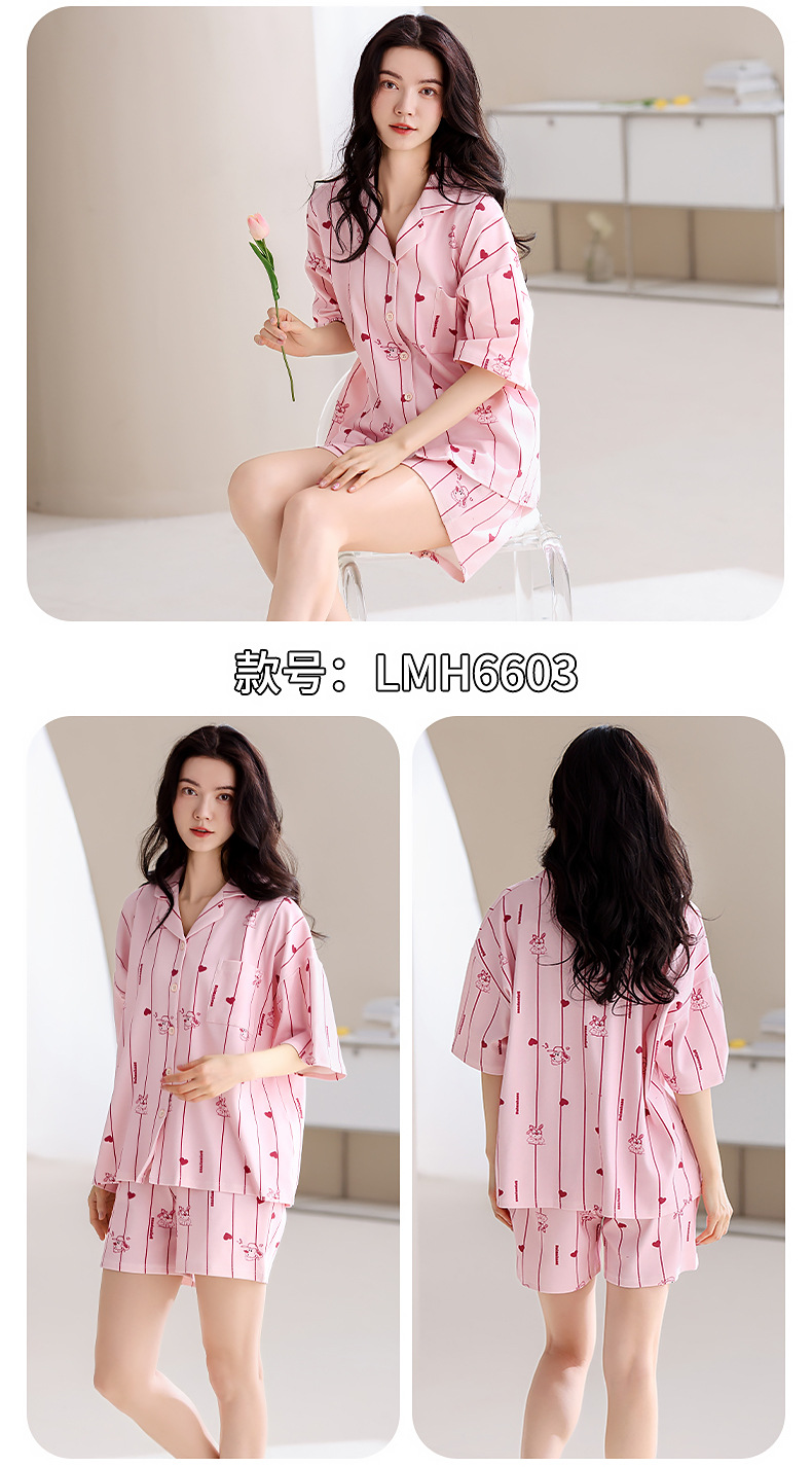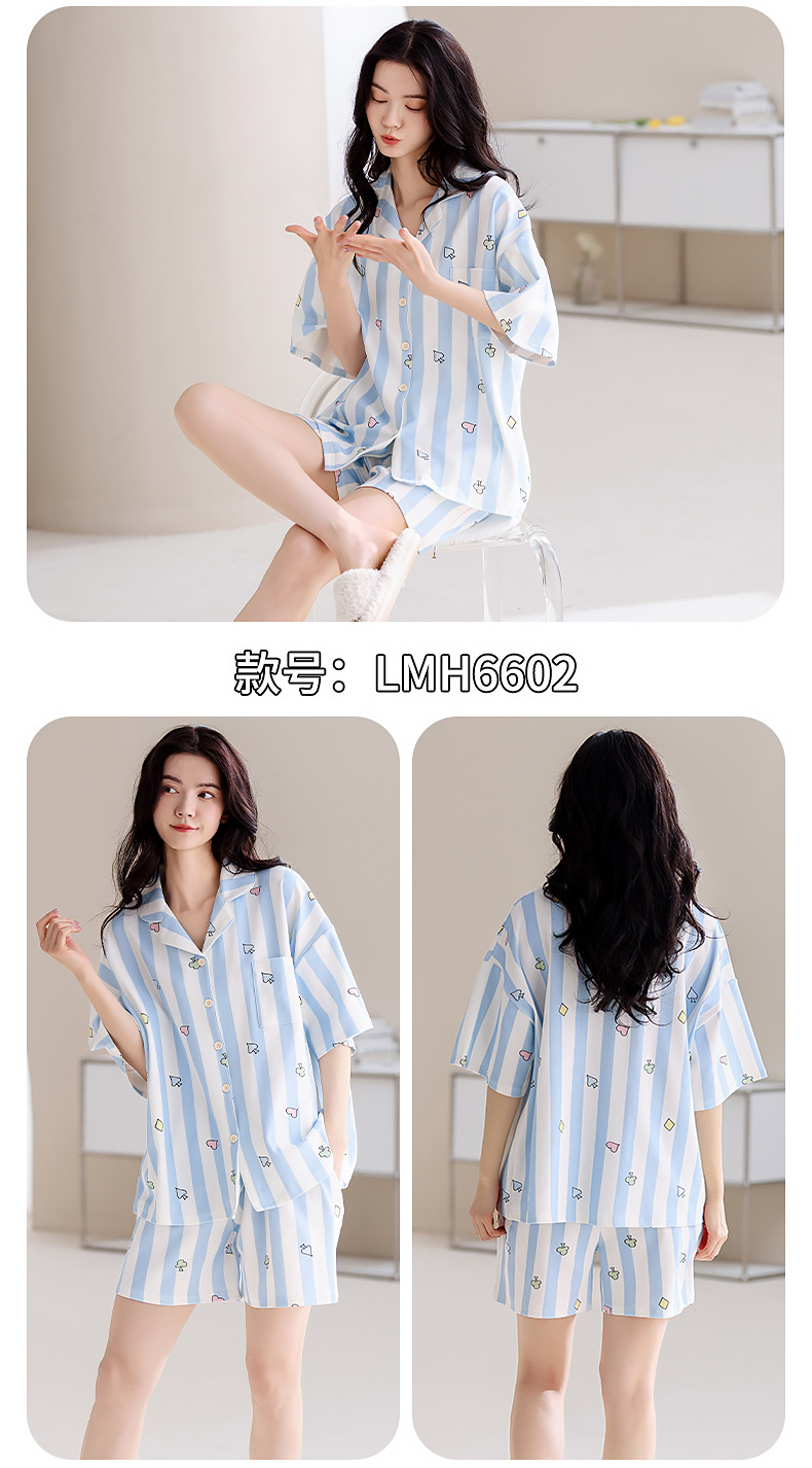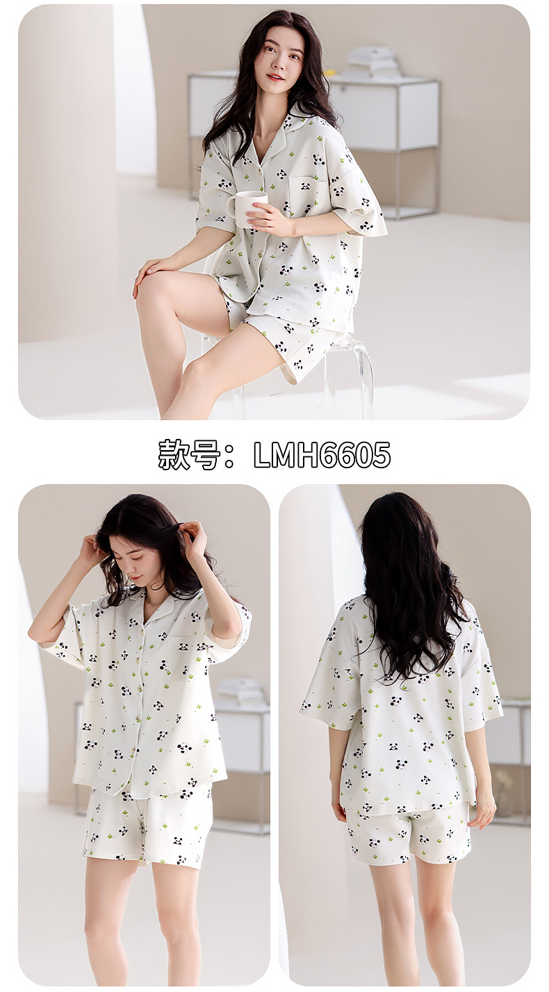 가슴 패드가 있는 여름 여성용 순면 잠옷 반팔 반바지 2025 새로운 스타일은 귀여운 가정복 세트 여름 외부에서 착용 가능스토어 가기