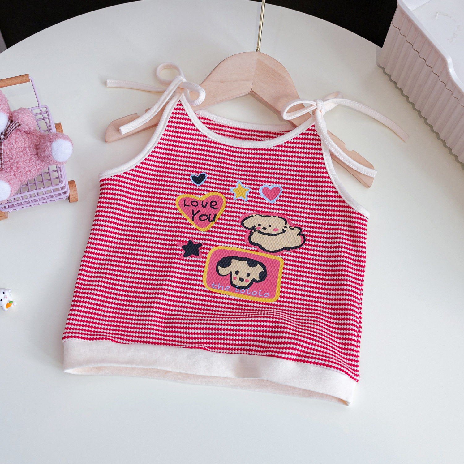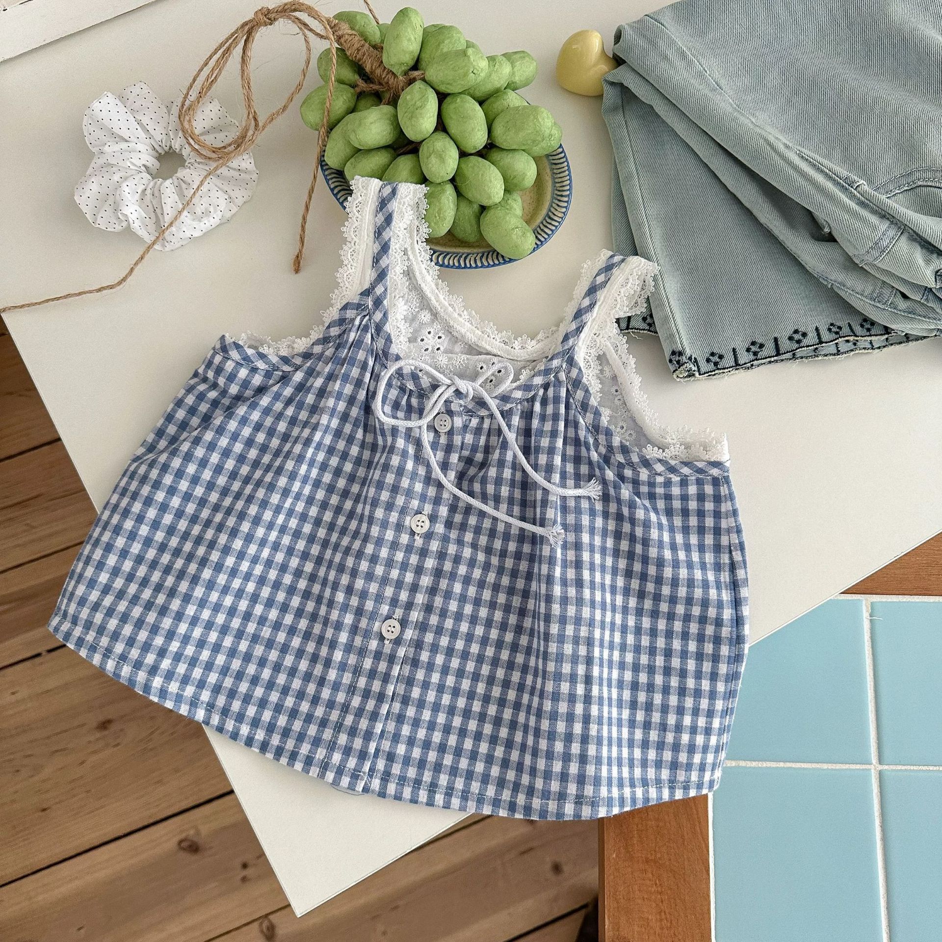 여자 조끼 2025 새로운 여름 어린이 유행 아기 격자 무늬 멜빵 아기 소녀 여름 탑