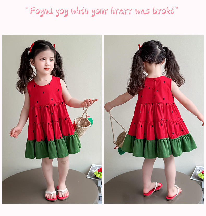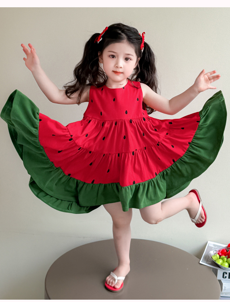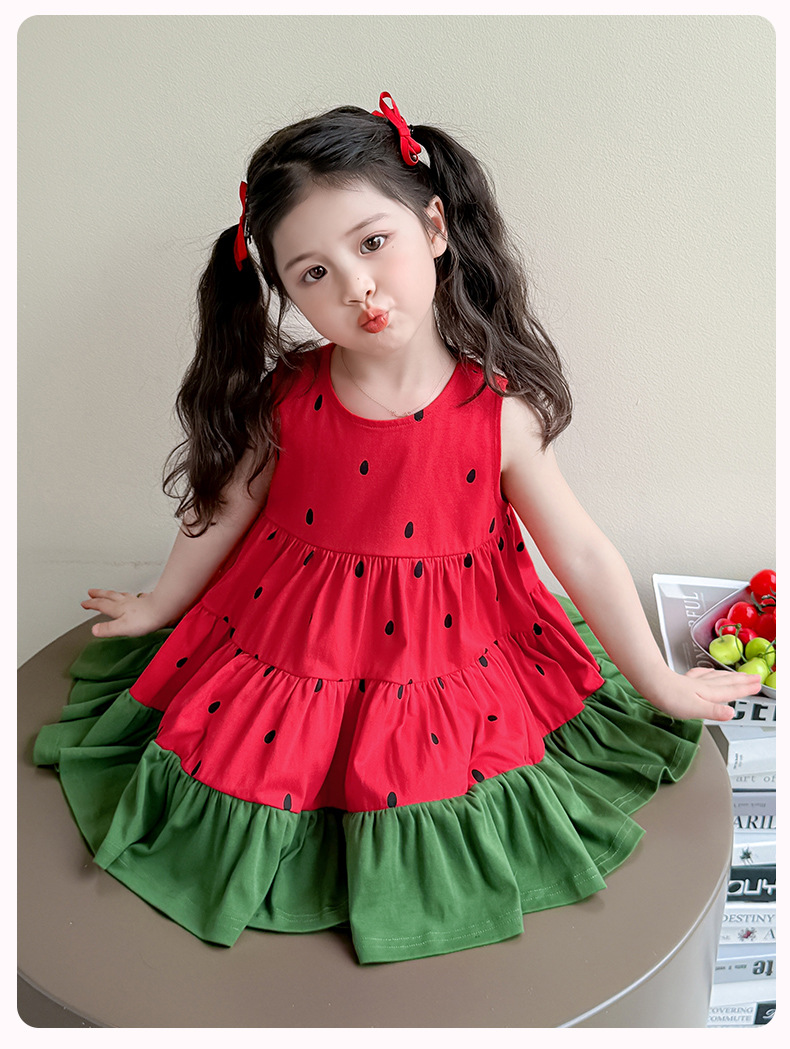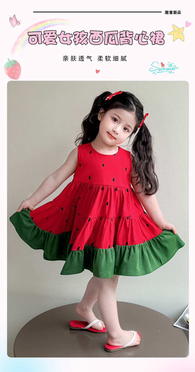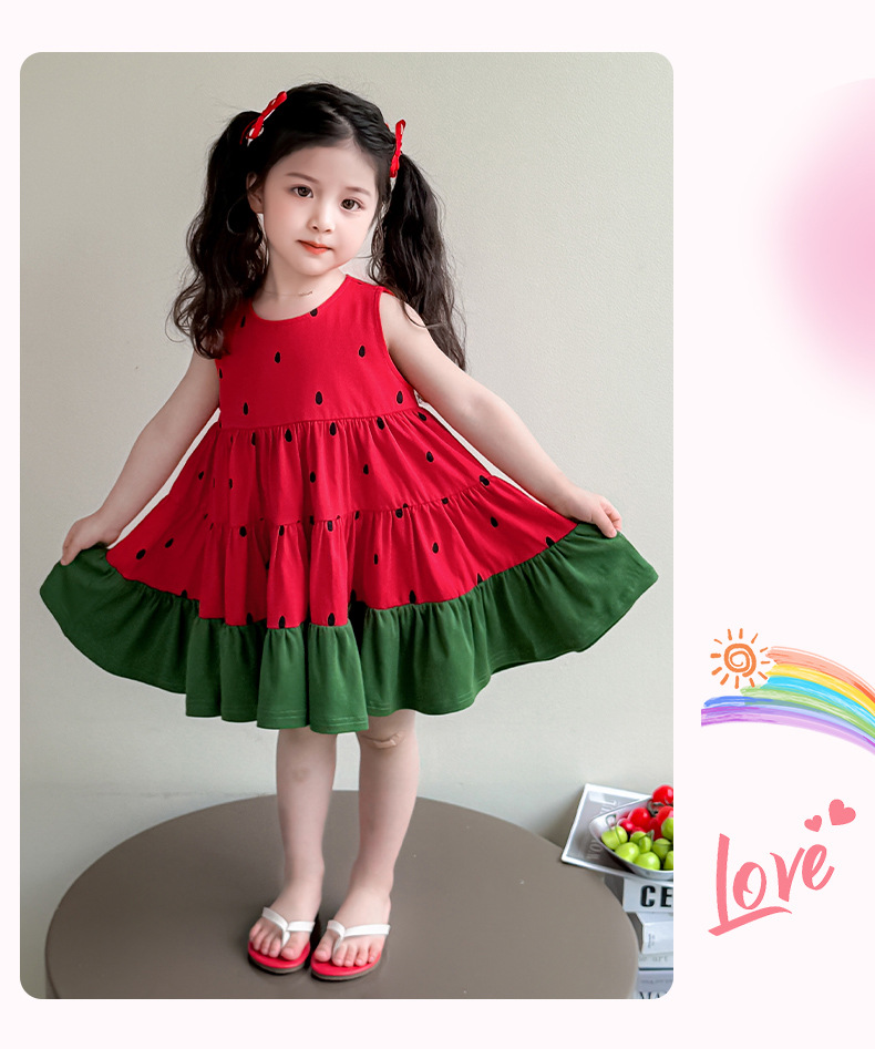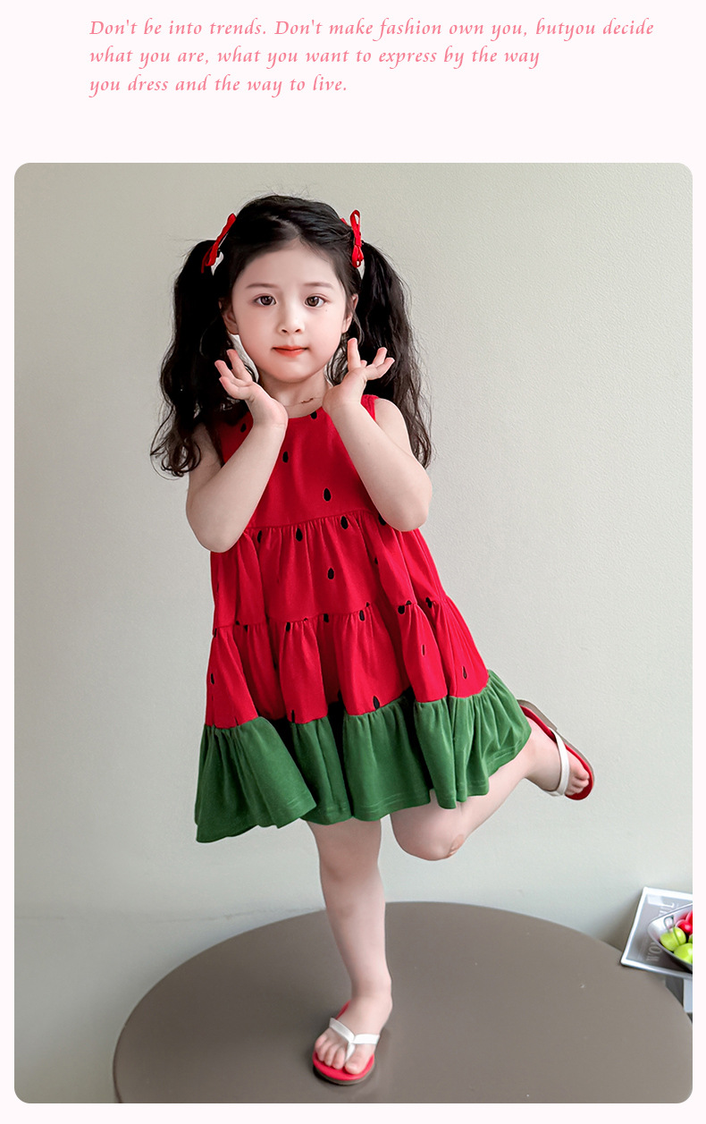 여자 조끼 드레스 여름 2025 새로운 유행 어린이 아기 소녀 수박 접합 공주 스커트
