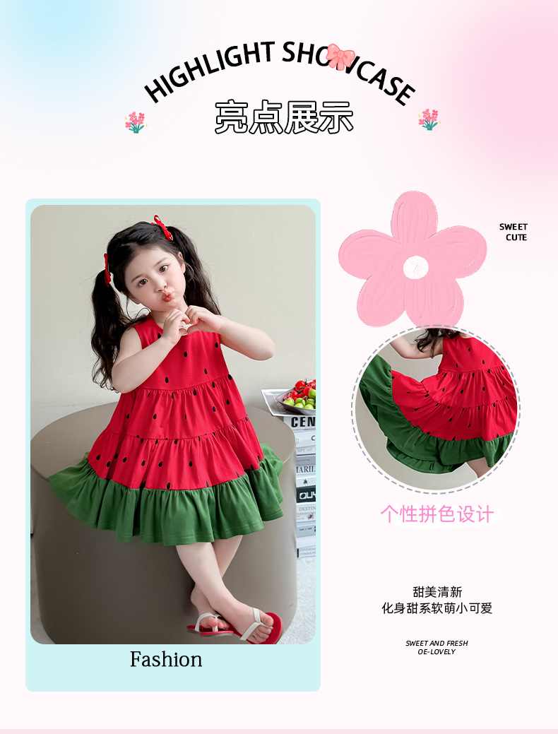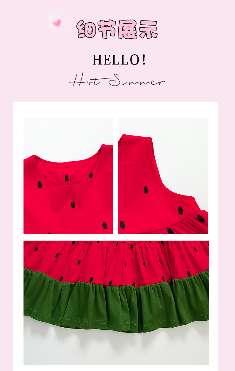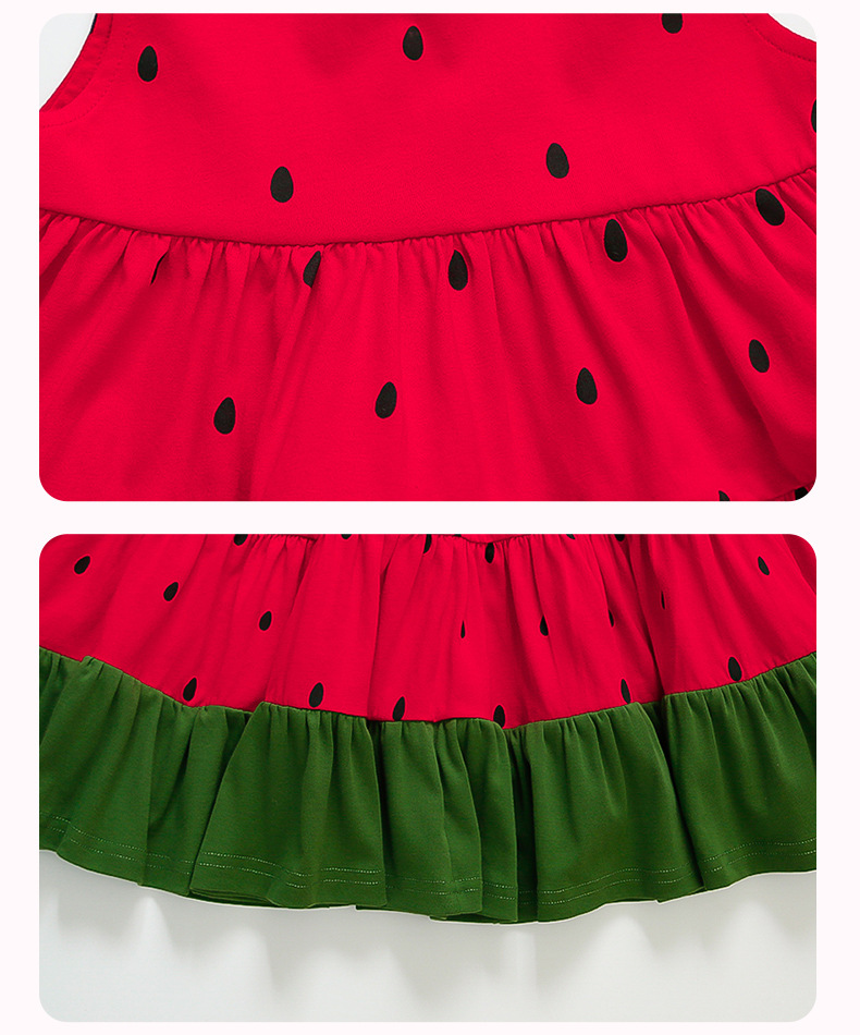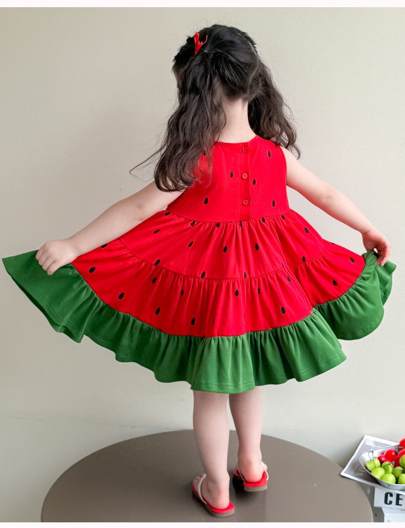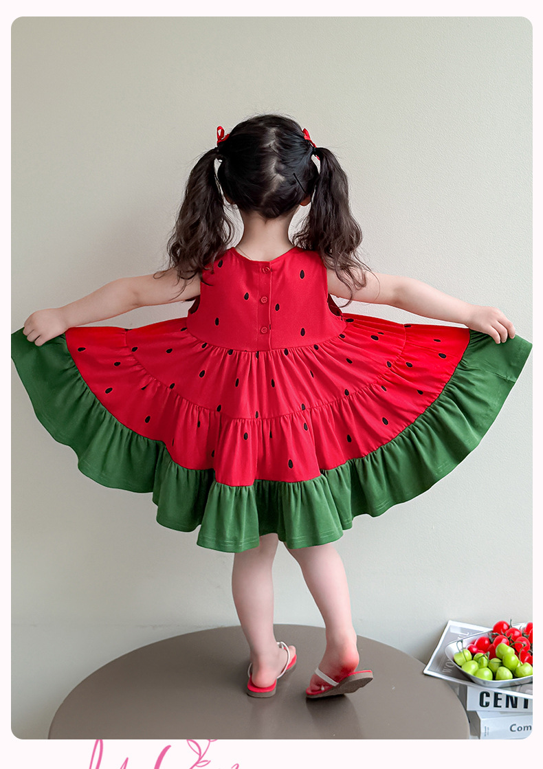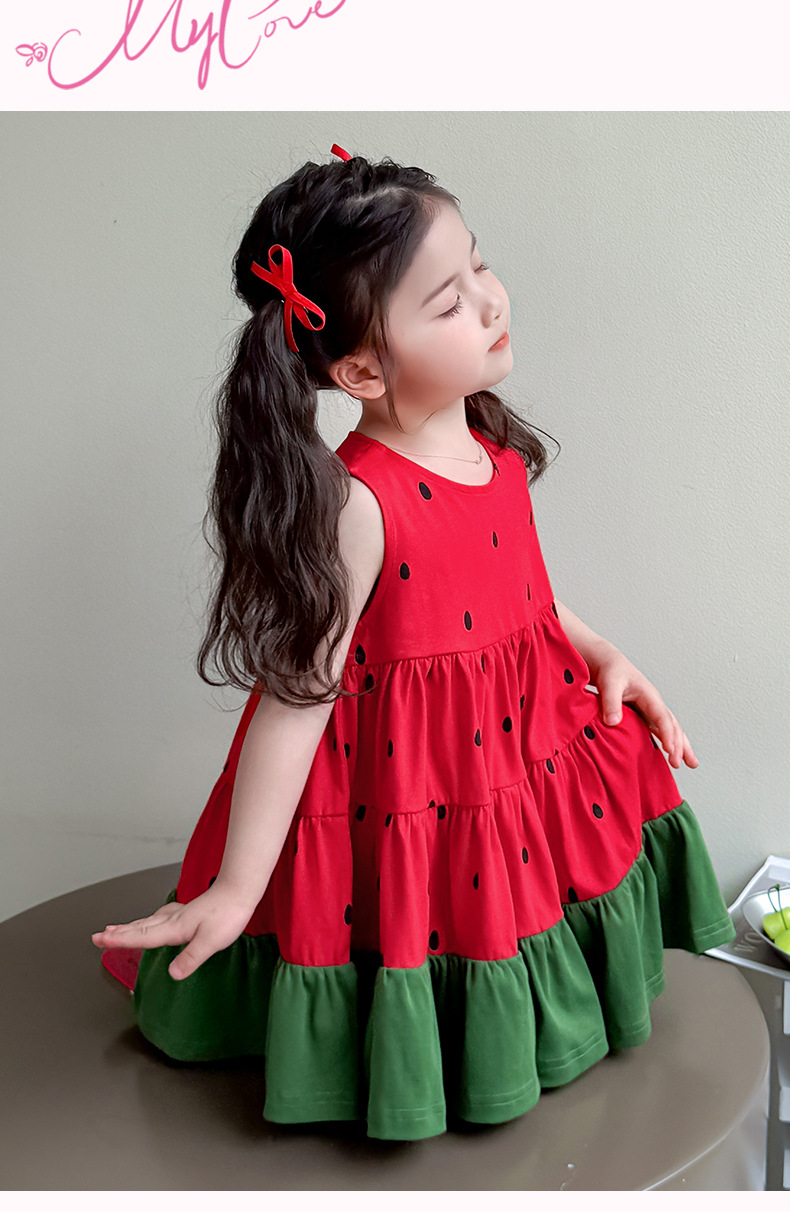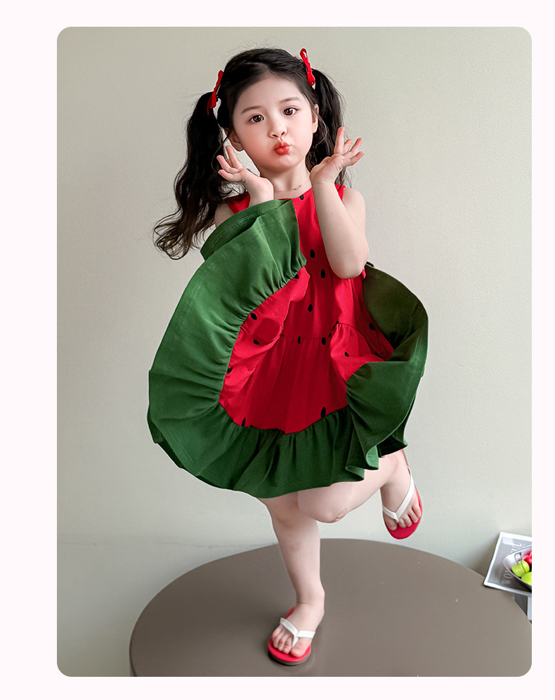 여자 조끼 드레스 여름 2025 새로운 유행 어린이 아기 소녀 수박 접합 공주 스커트