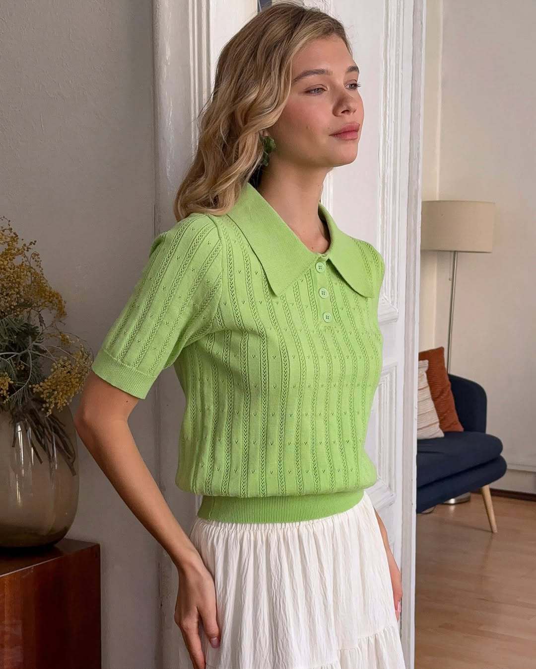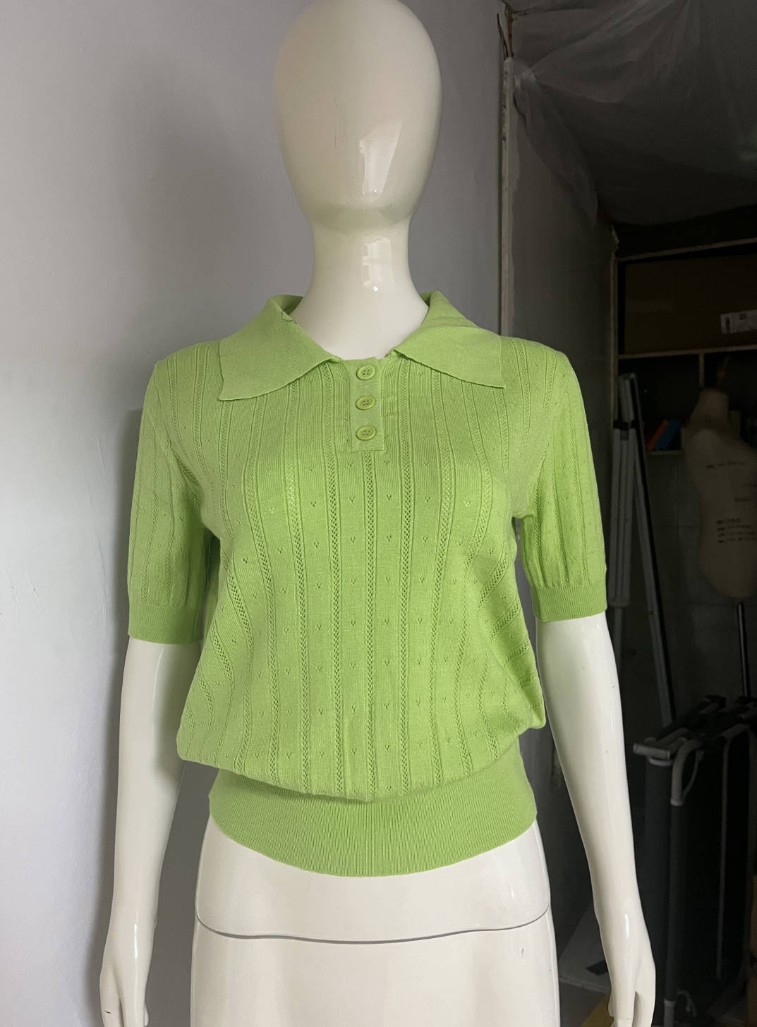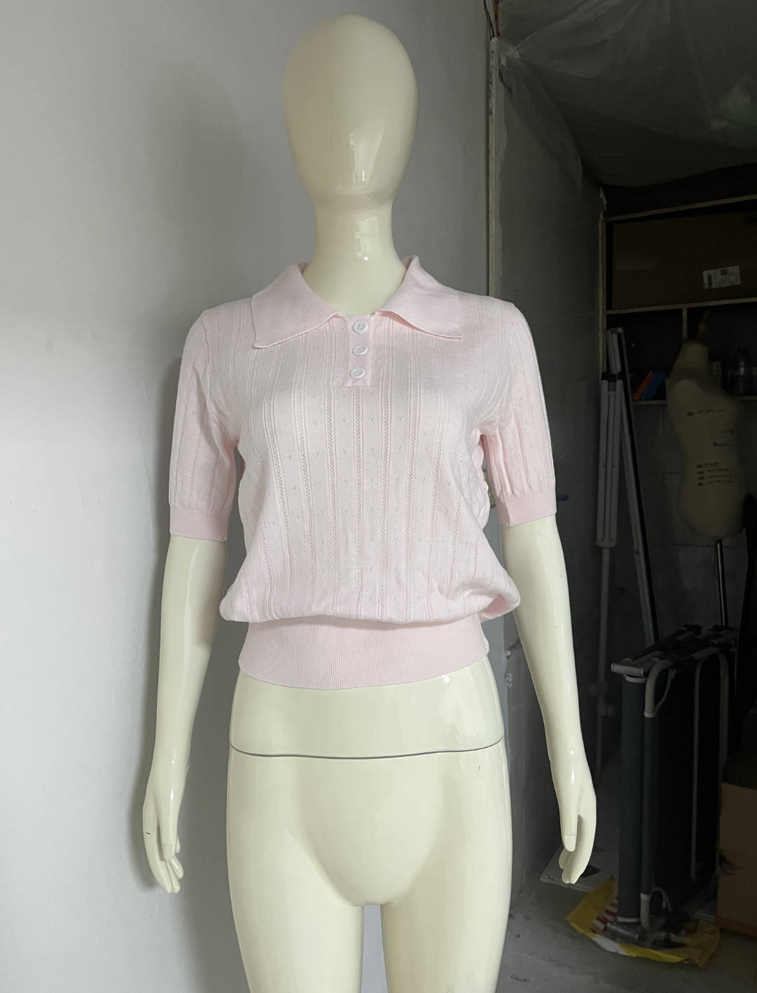 2025 크로스보더 러시아 중공 라펠 반팔 스웨터 여성 2025 신작 여름 틈새 반팔 탑