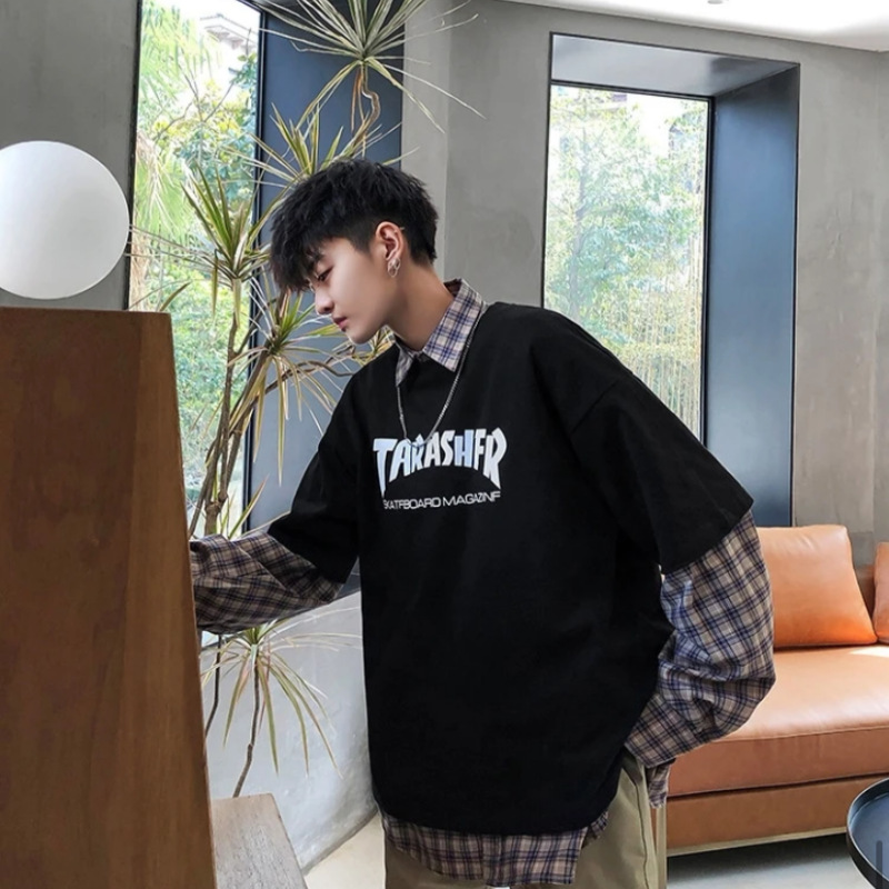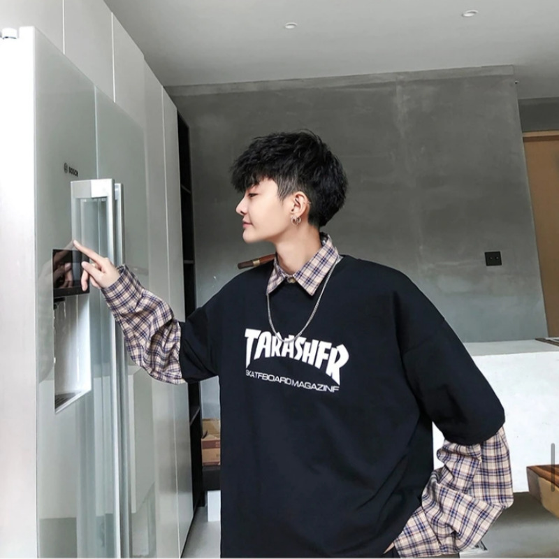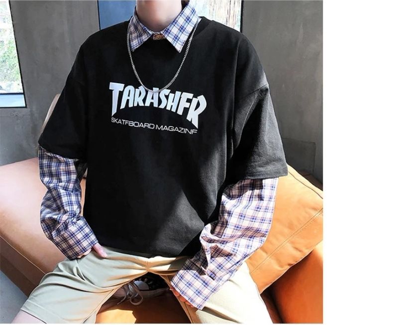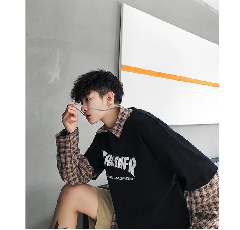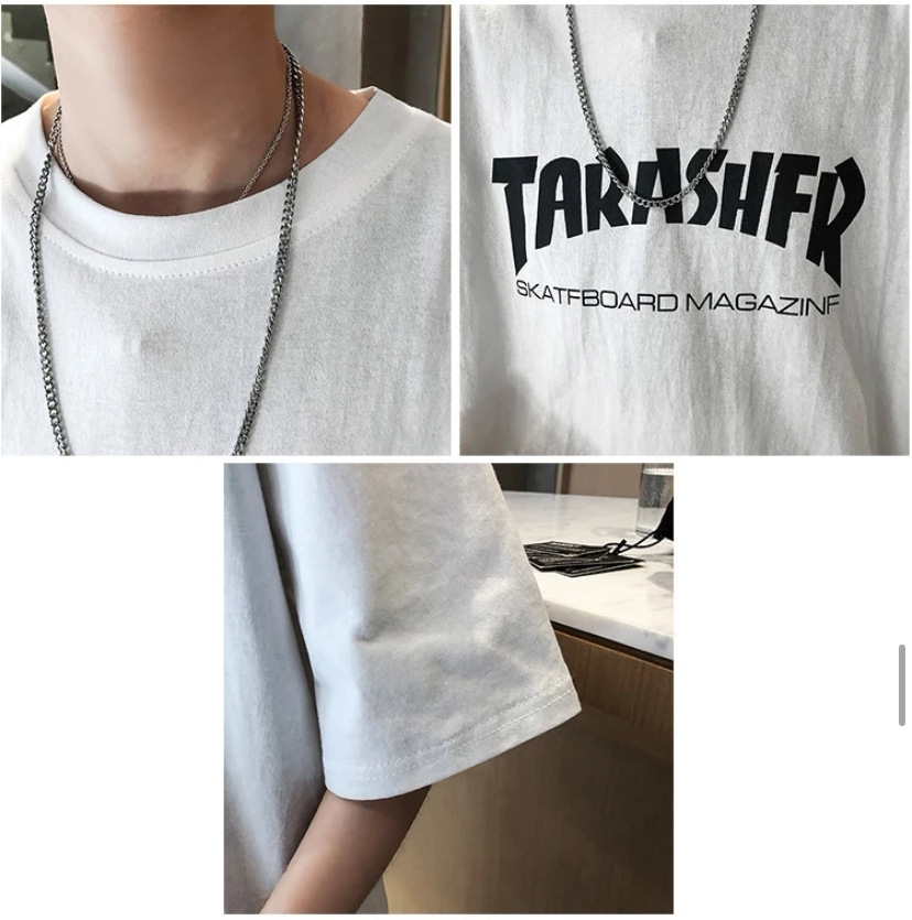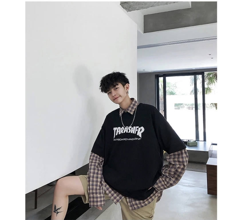 아메리칸 레트로 반팔 티셔츠 남성 여름 신작 헤비급 한국식 오른쪽 어깨 반팔 소년과 청소년 느슨한 옷