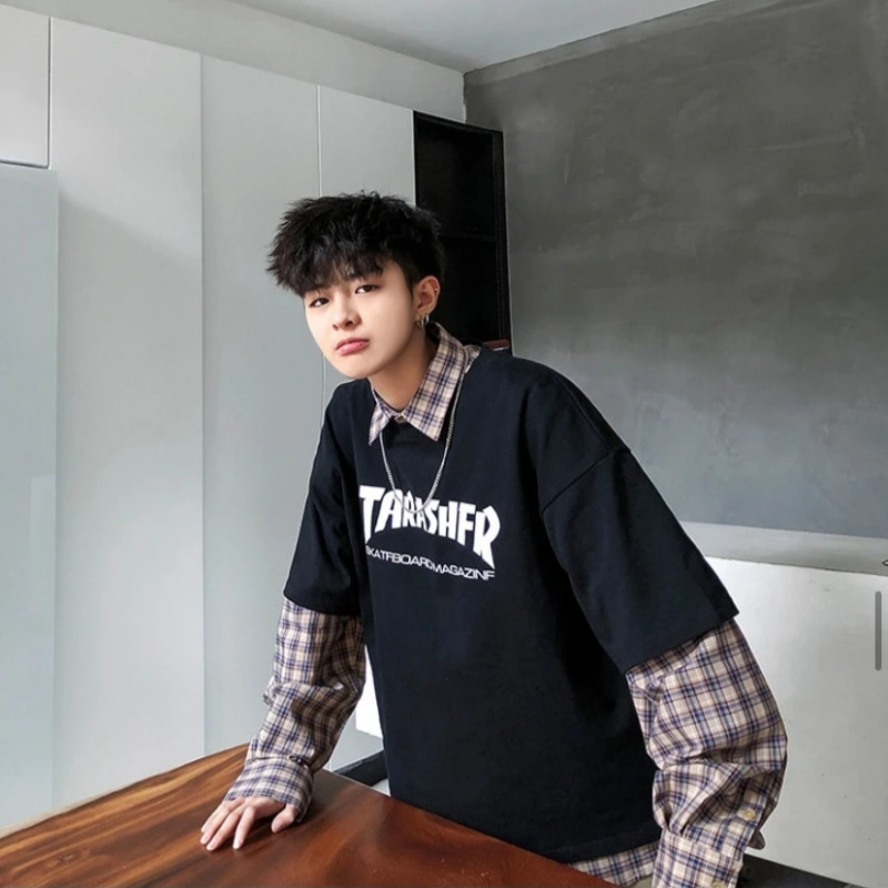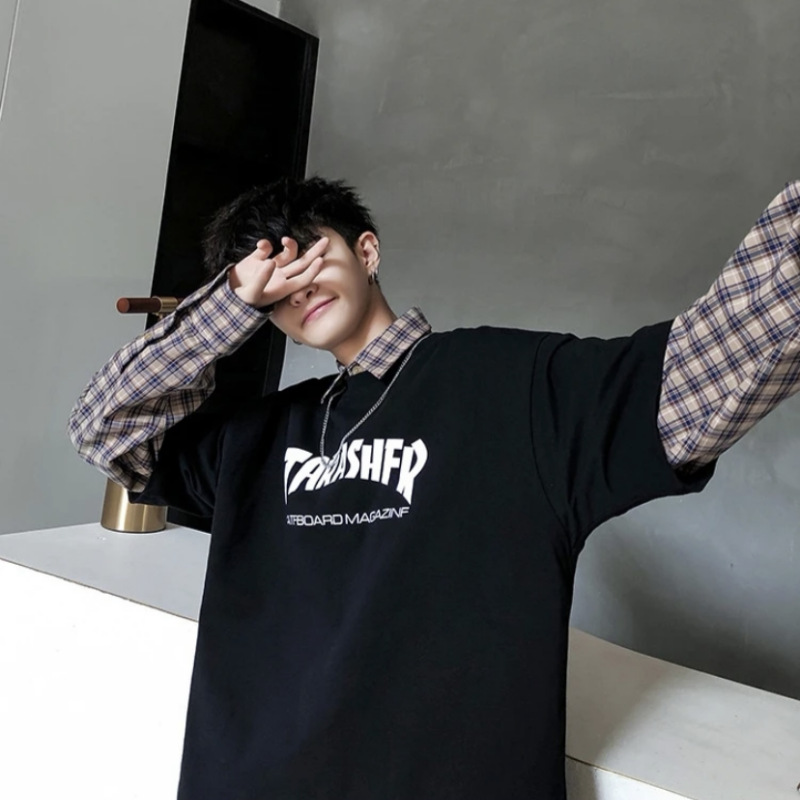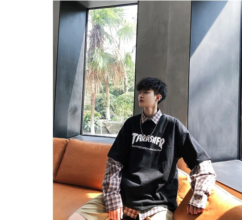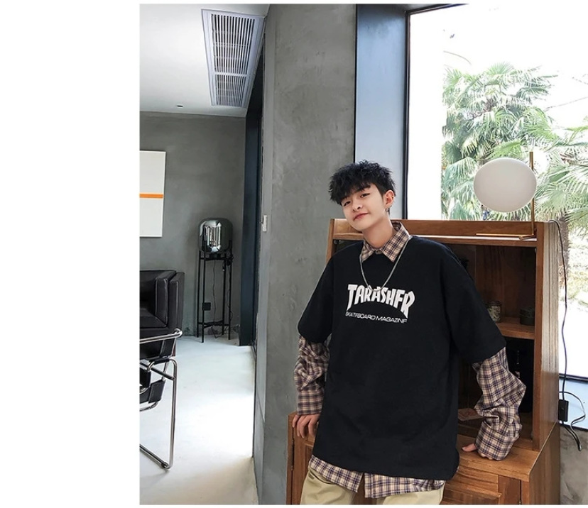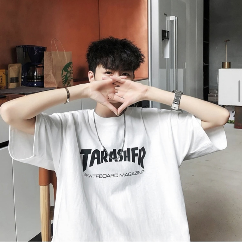 아메리칸 레트로 반팔 티셔츠 남성 여름 신작 헤비급 한국식 오른쪽 어깨 반팔 소년과 청소년 느슨한 옷스토어 가기