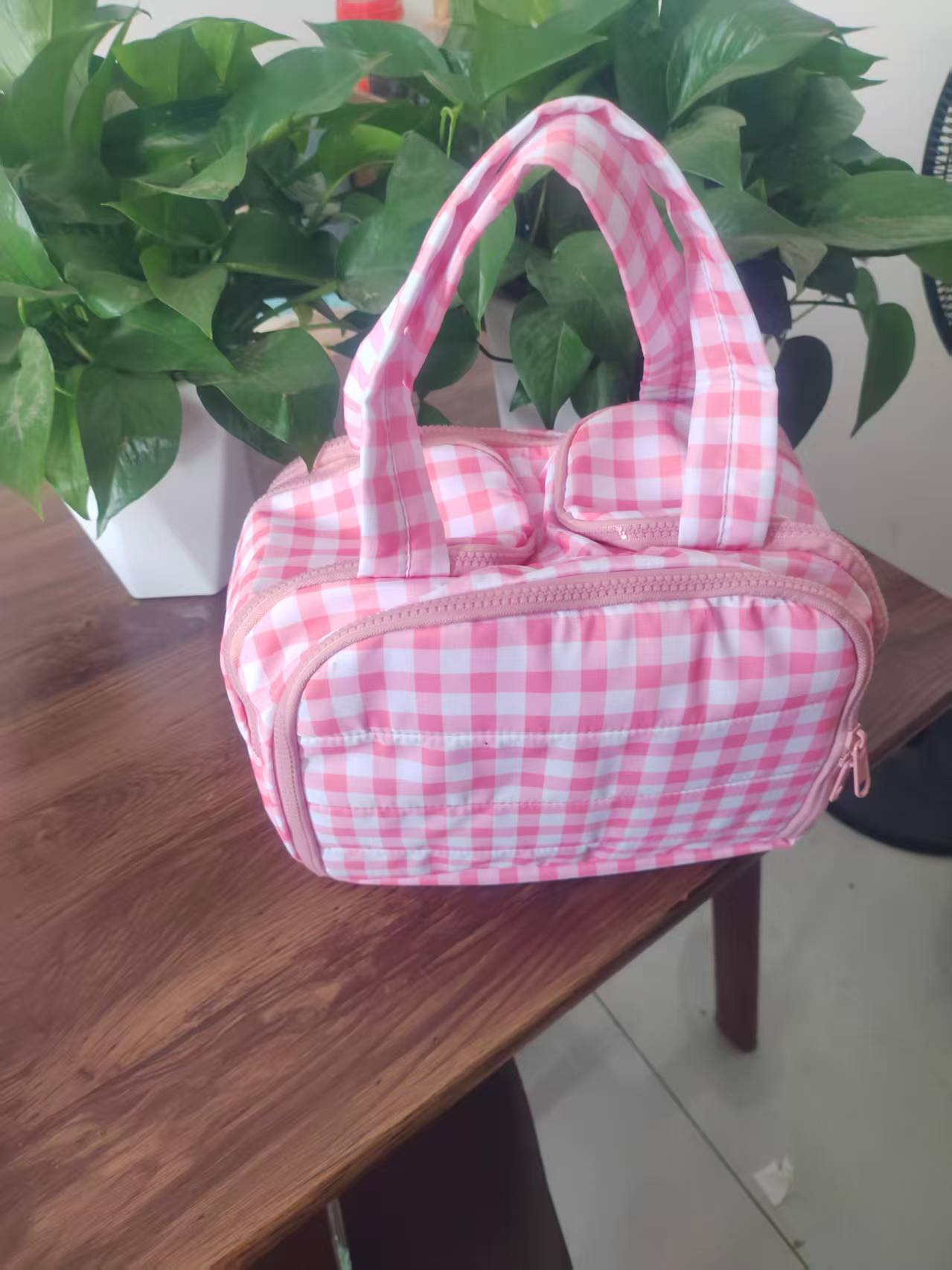 • 고급 4절 화장품 가방 [핑크 체크 무늬]