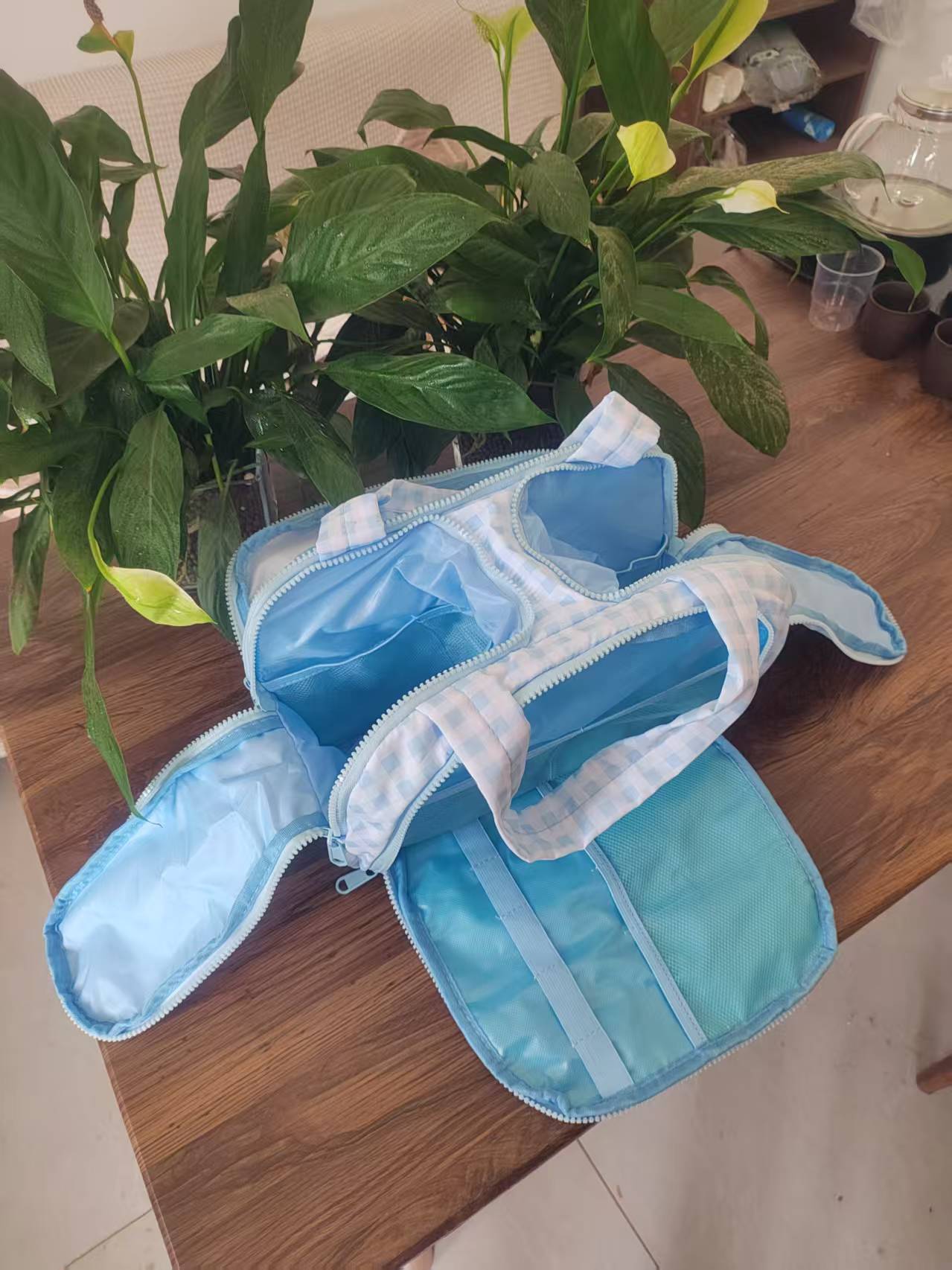 • 고급 4절 화장품 파우치 [파스텔 블루 체크]