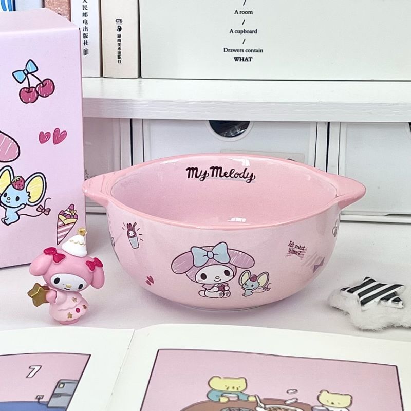 귀여운 만화 산리오 세라믹 밥 그릇 어린이 먹는 그릇 쿠로미 식기 세라믹 베이킹 그릇 생일스토어 가기