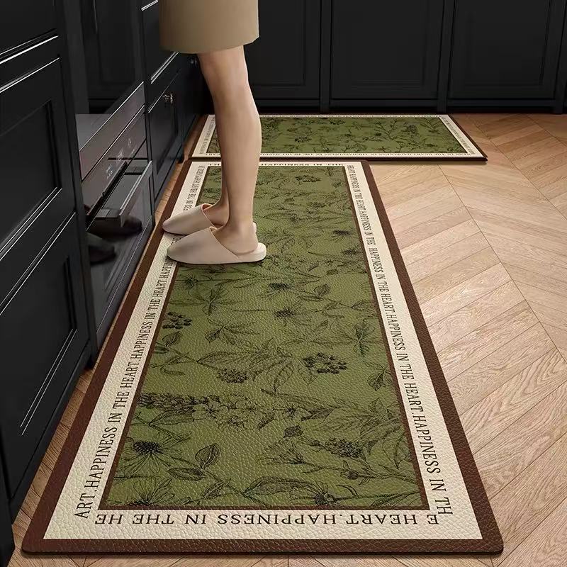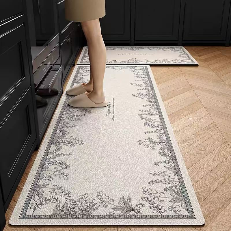 주방 바닥 매트는 미끄럼 방지 및 기름 방지, 닦아낼 수 있고 세탁할 수 있는 특수 바닥 매트, 방수 및 먼지 방지 가정용 가죽 PVC 카펫입니다.