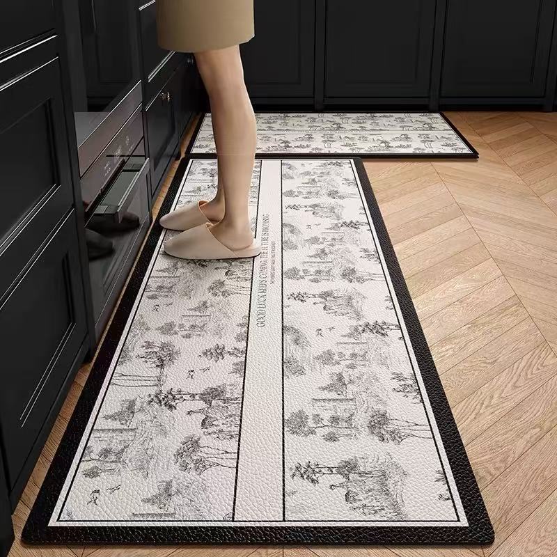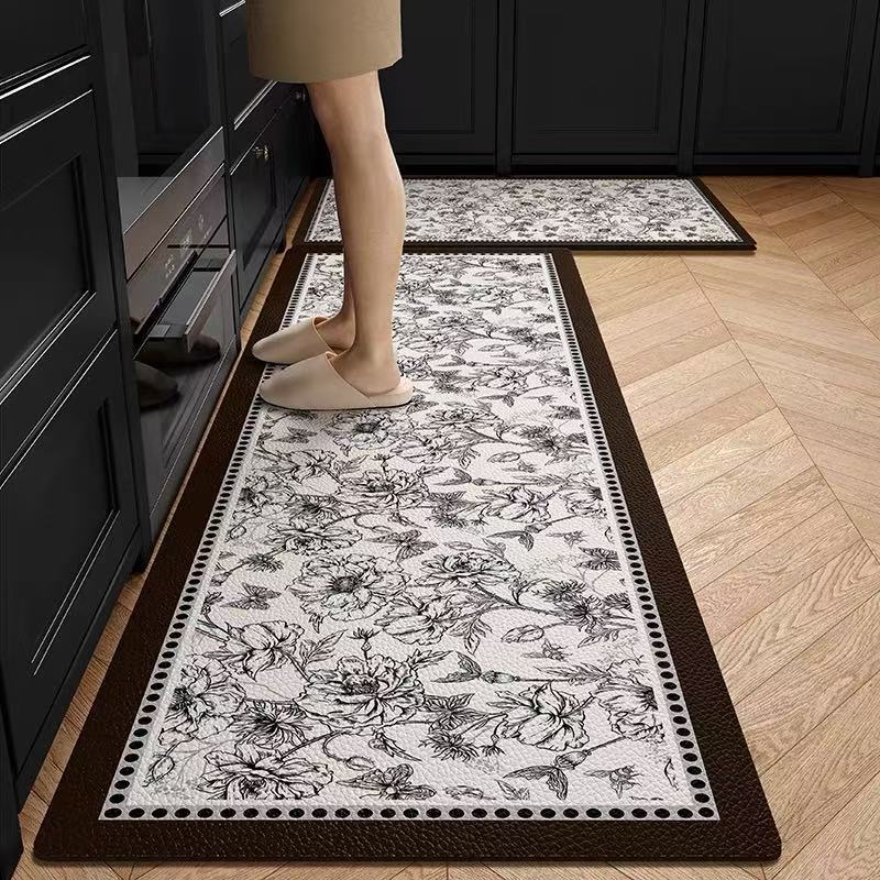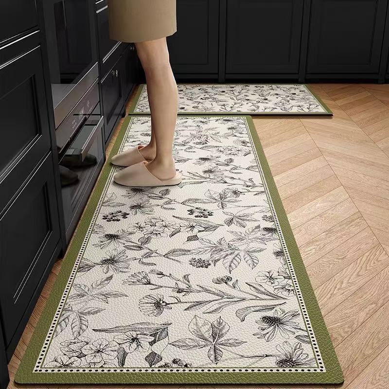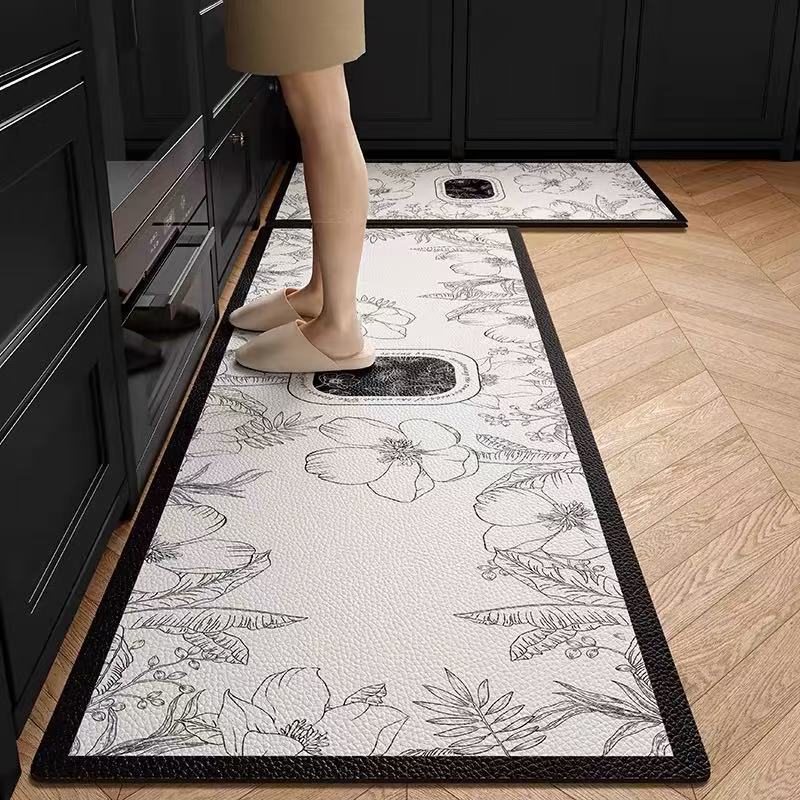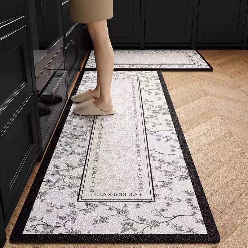 주방 바닥 매트는 미끄럼 방지 및 기름 방지, 닦아낼 수 있고 세탁할 수 있는 특수 바닥 매트, 방수 및 먼지 방지 가정용 가죽 PVC 카펫입니다.스토어 가기