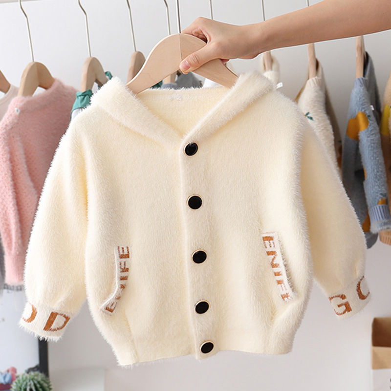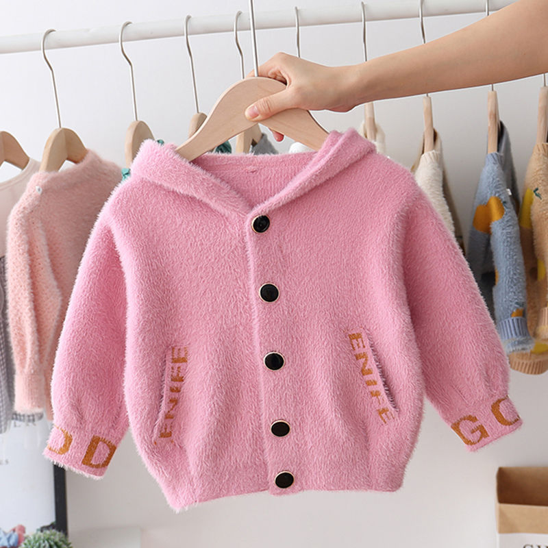 소년과 소녀를위한 새로운 가을, 겨울 밍크 벨벳 스웨터 재킷 어린 소녀 니트 카디건 후드 따뜻하고 벨벳 두꺼운