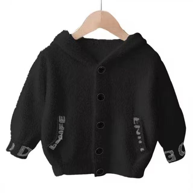 소년과 소녀를위한 새로운 가을, 겨울 밍크 벨벳 스웨터 재킷 어린 소녀 니트 카디건 후드 따뜻하고 벨벳 두꺼운스토어 가기