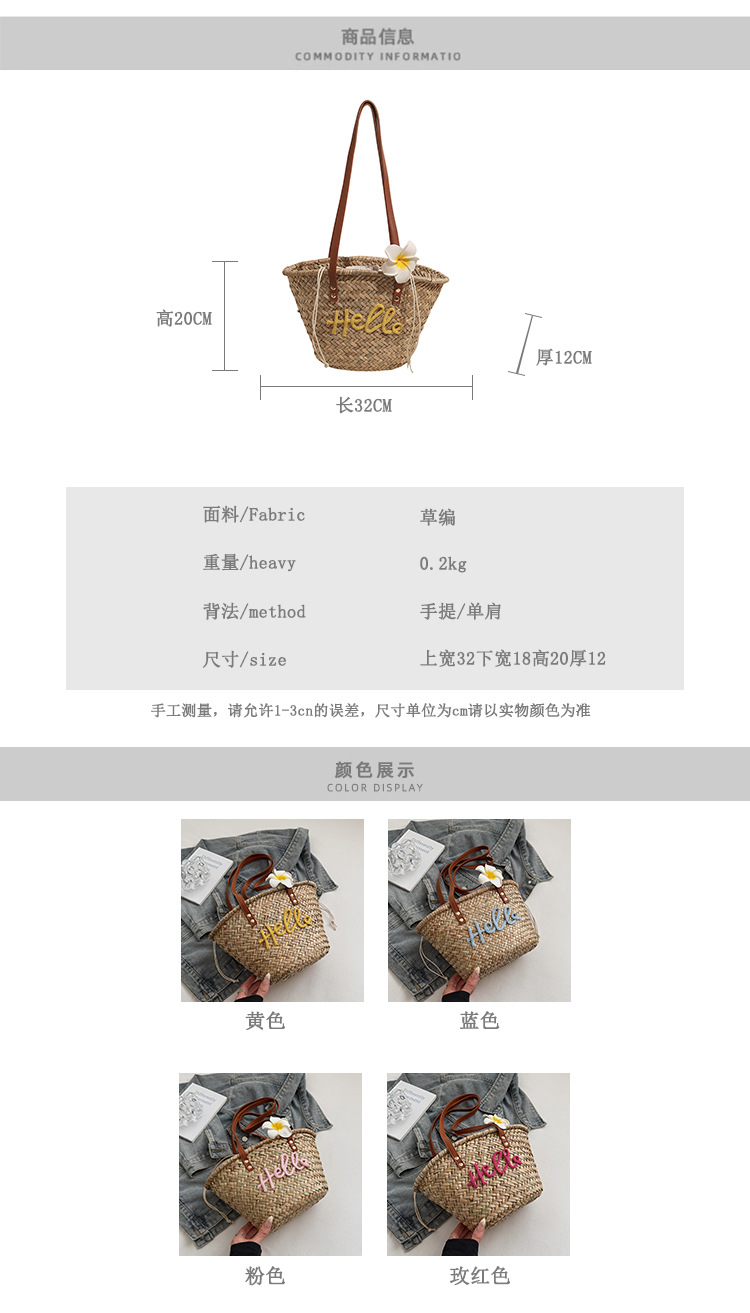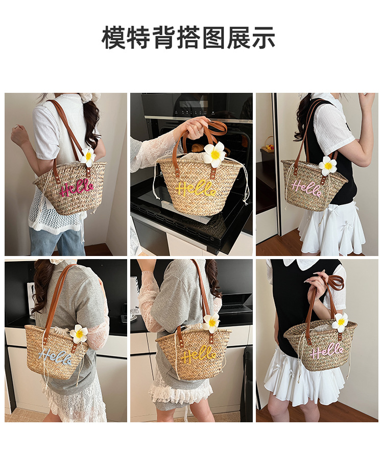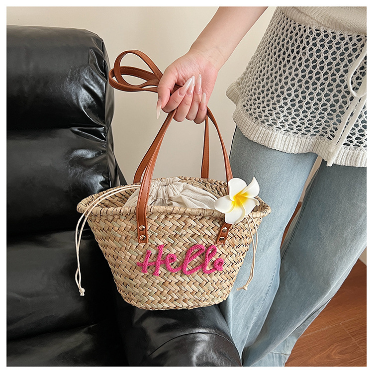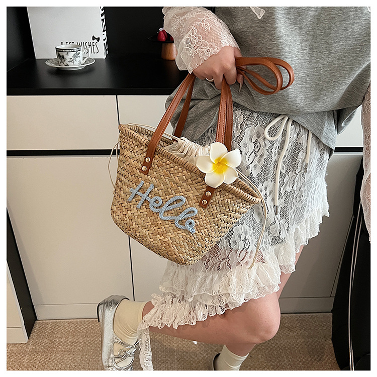 국경 간 2025 새로운 스타일 밀짚 가방 여성 가방 유행 짠 토트 백 핸드백 해변 휴가 해변 가방 여성 가방스토어 가기