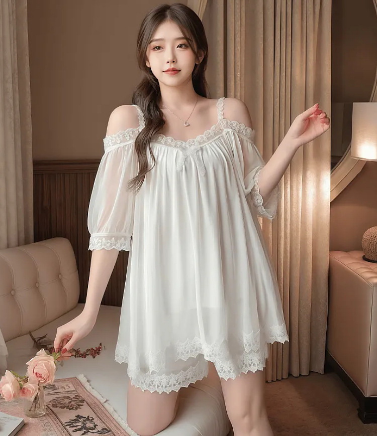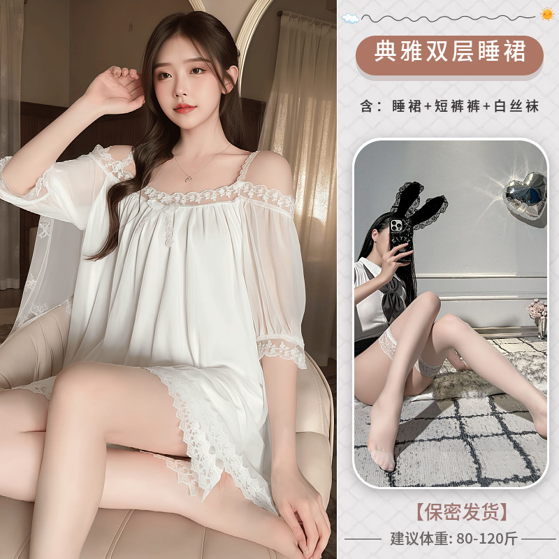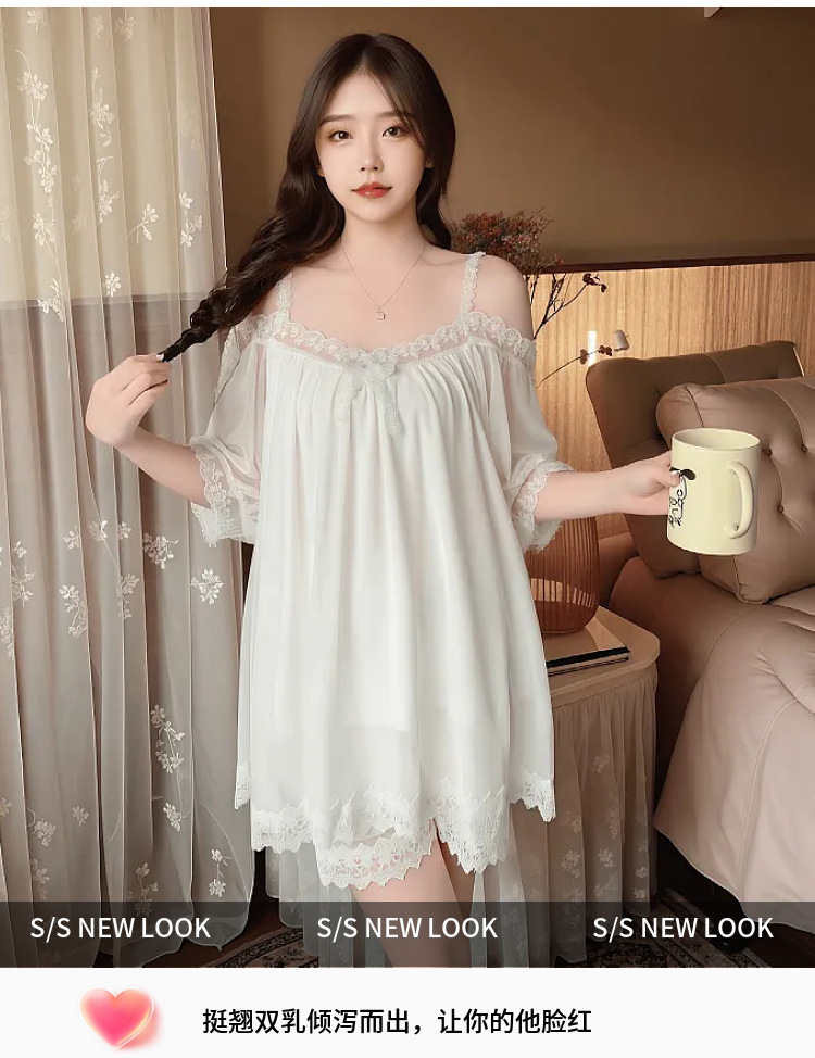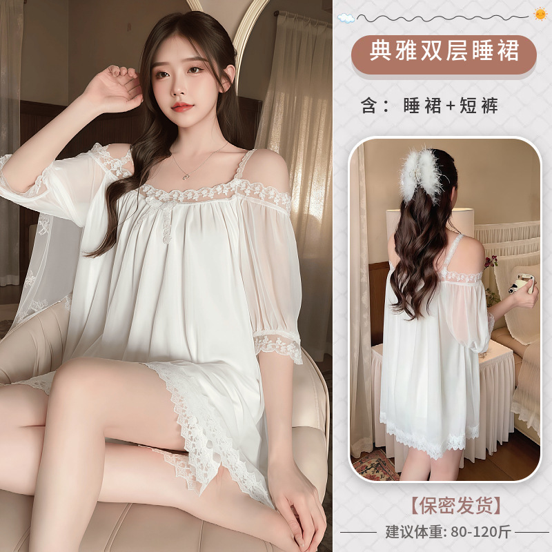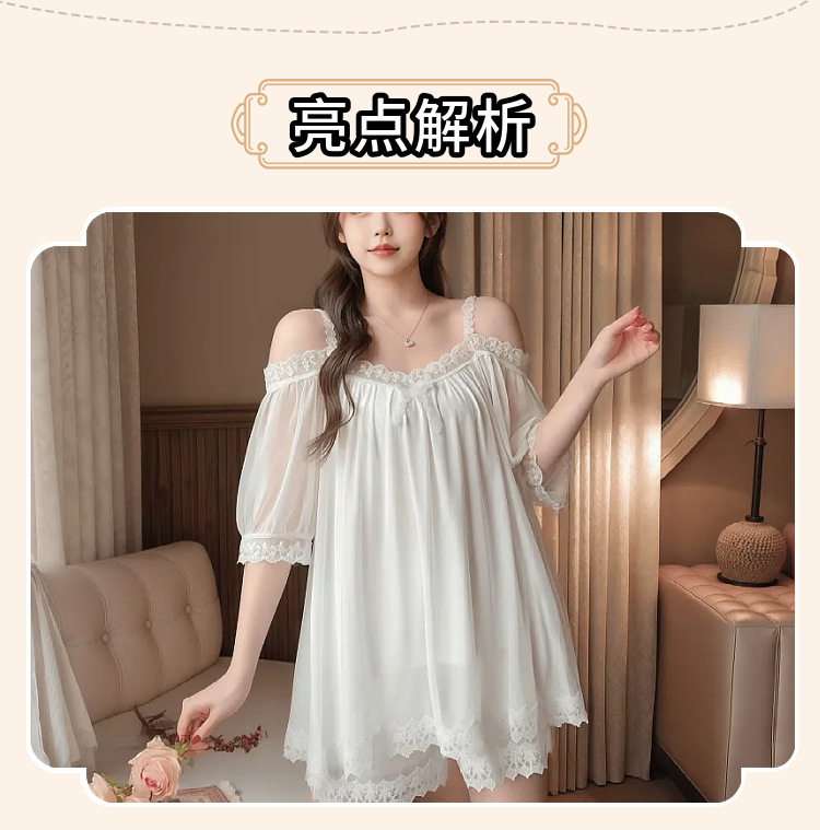 여성을위한 궁전 스타일 메쉬 스커트 잠옷 여름 달콤한 공주 스타일 화이트 서스펜더 오프 숄더 섹시한 잠옷 홈웨어스토어 가기