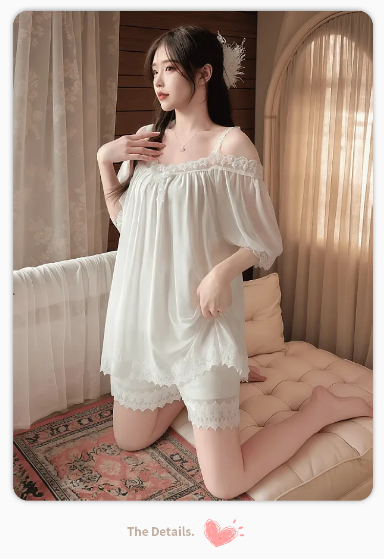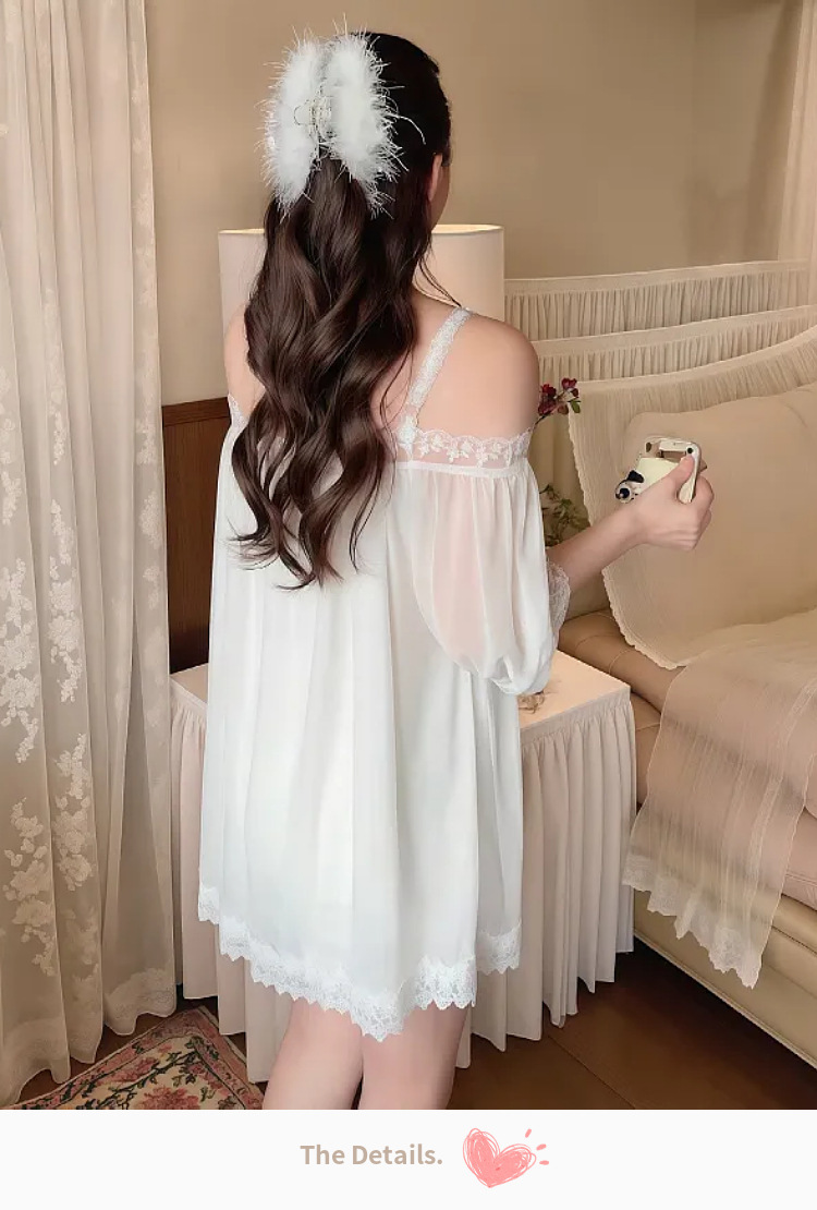 여성을위한 궁전 스타일 메쉬 스커트 잠옷 여름 달콤한 공주 스타일 화이트 서스펜더 오프 숄더 섹시한 잠옷 홈웨어