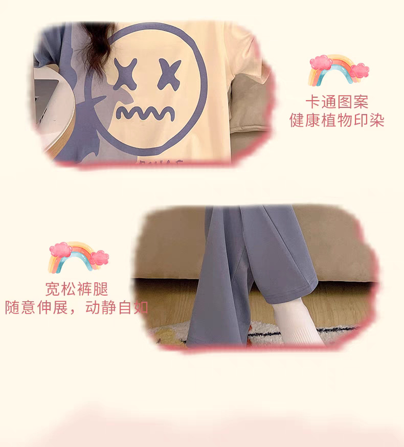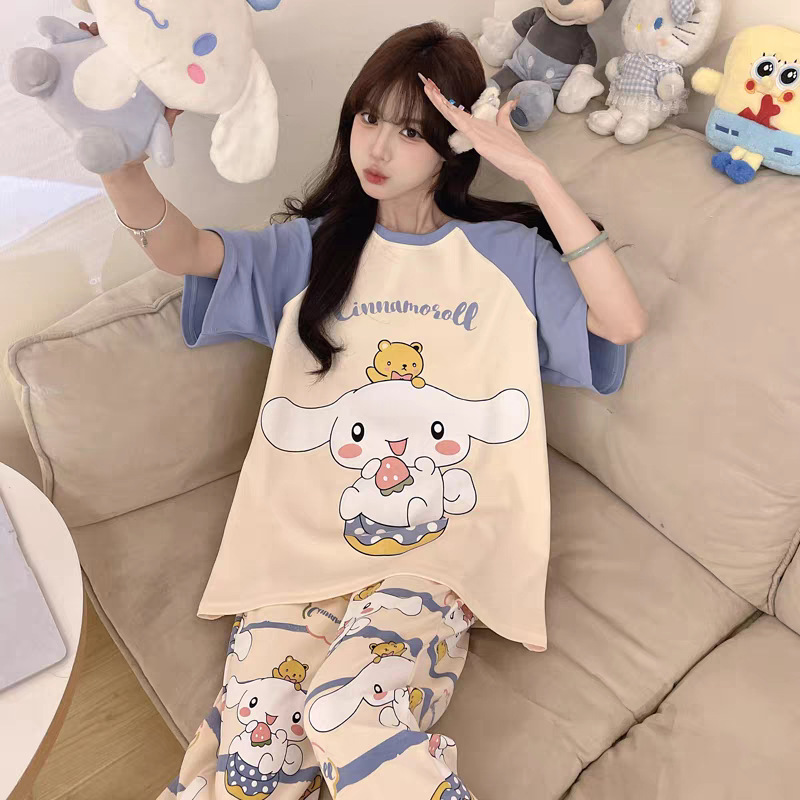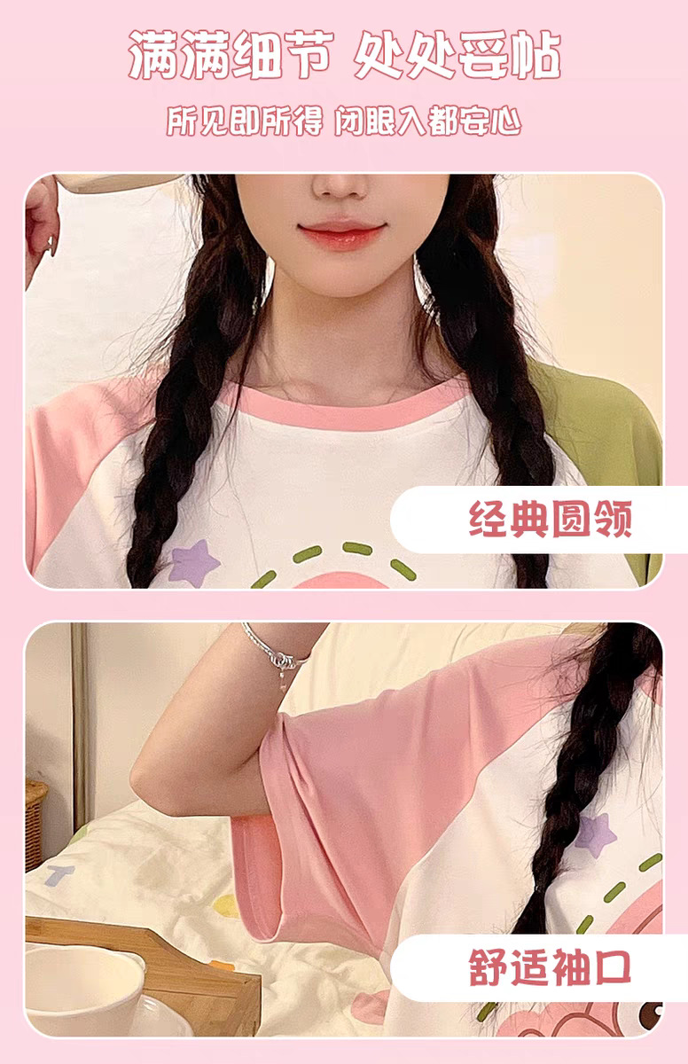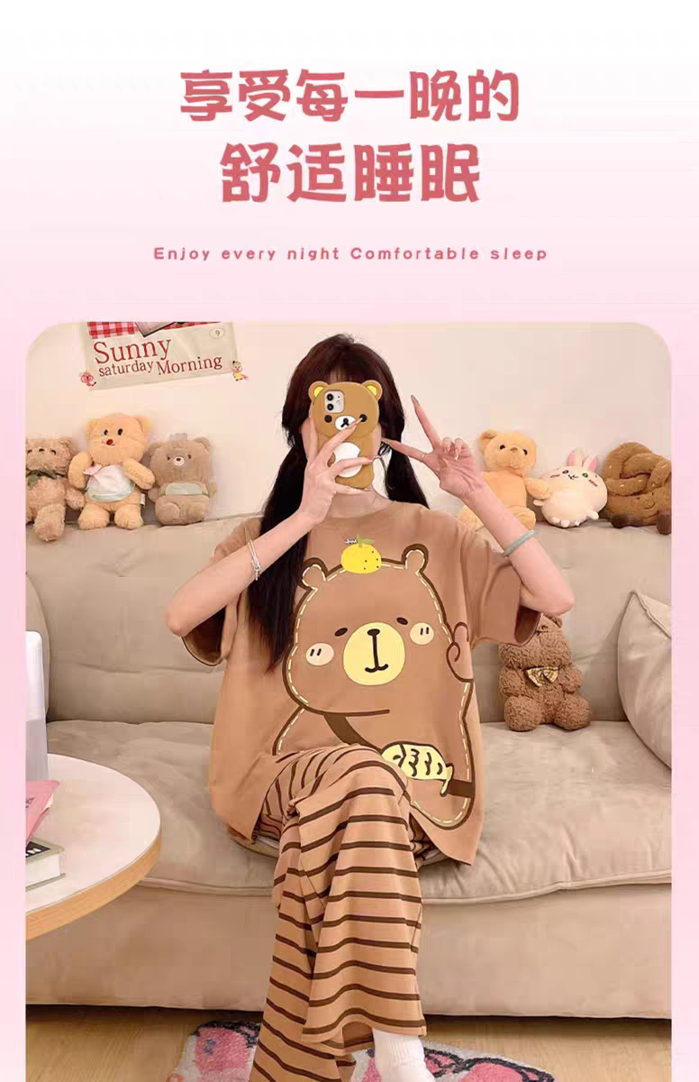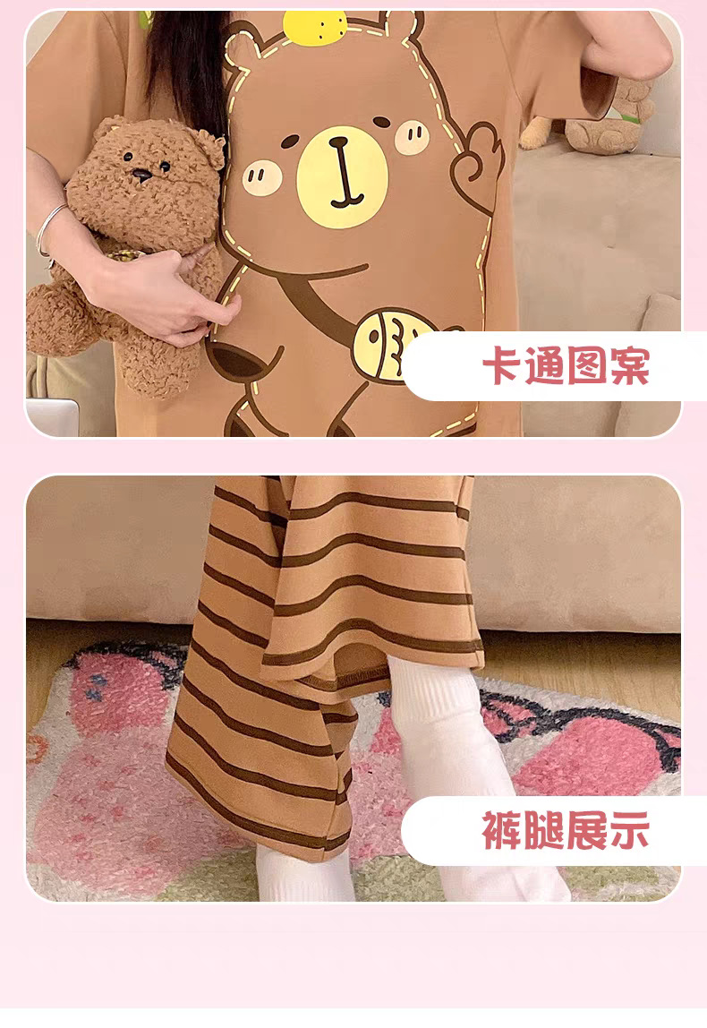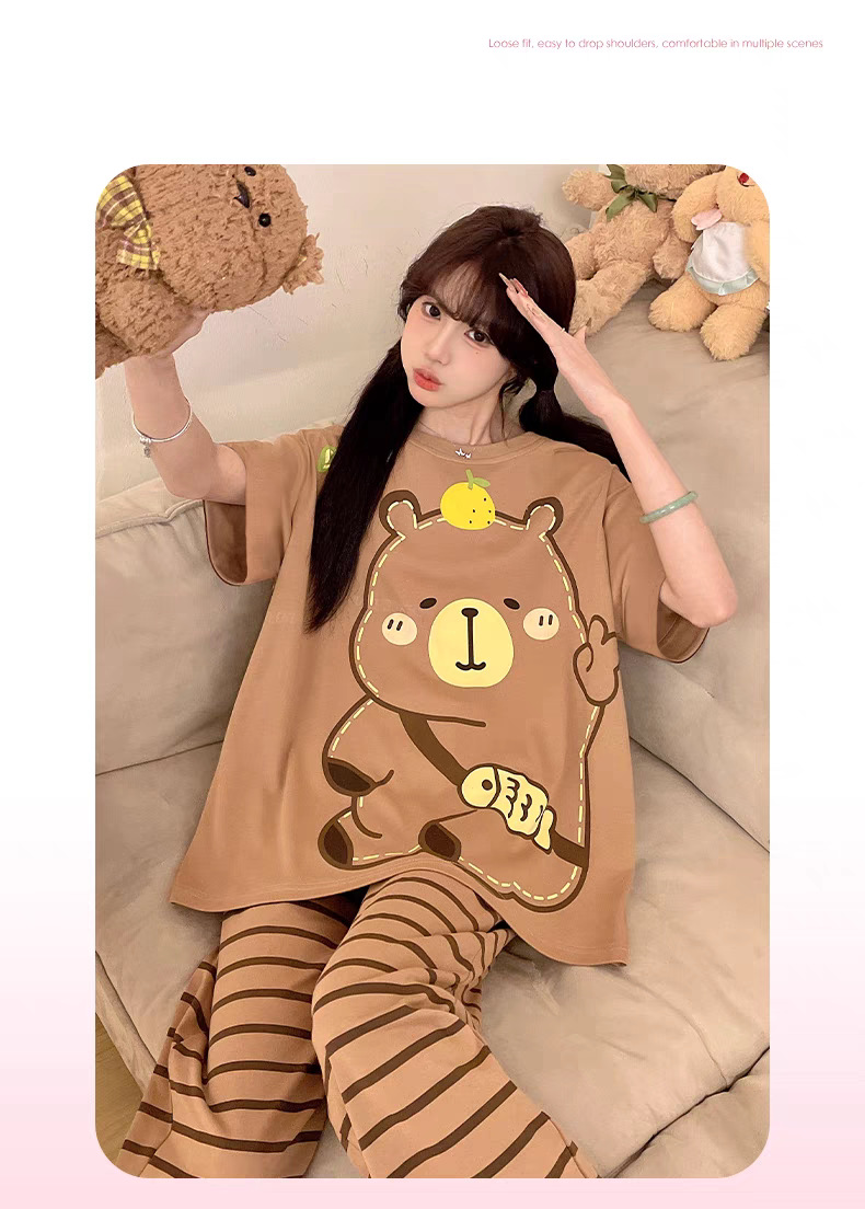 여성용 잠옷 여름 반팔 바지 만화 플러스 사이즈 봄, 가을 느슨한 학생 잠옷 여성 여름 홈웨어 세트스토어 가기