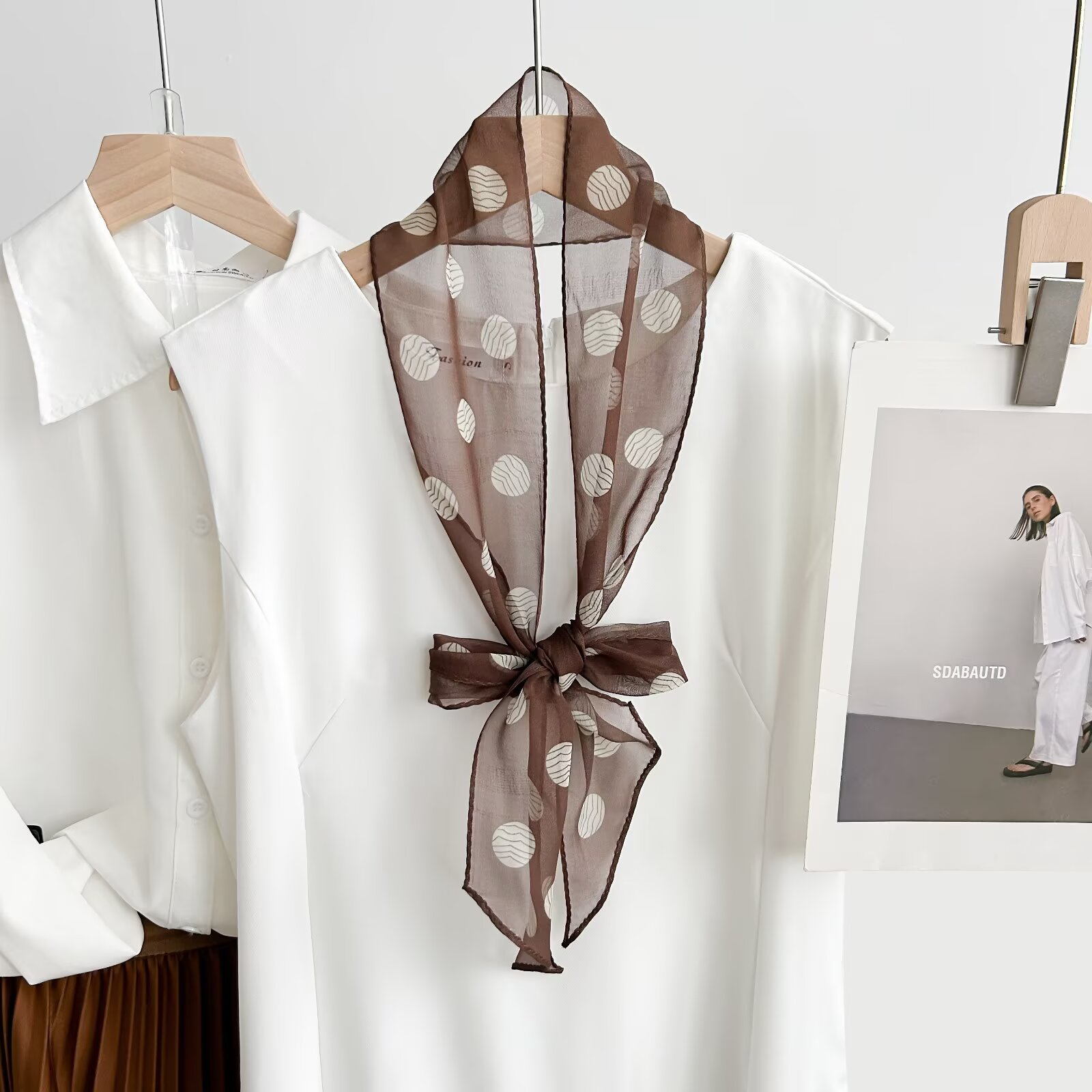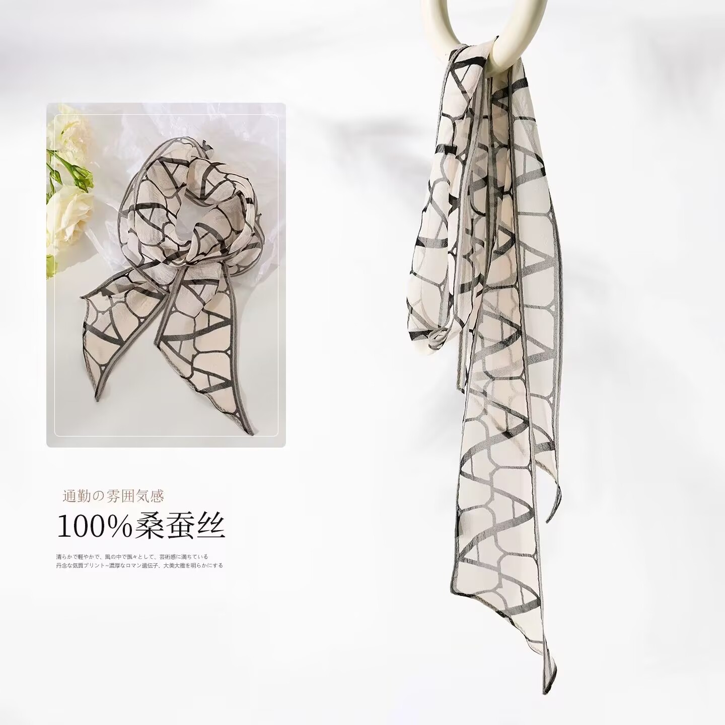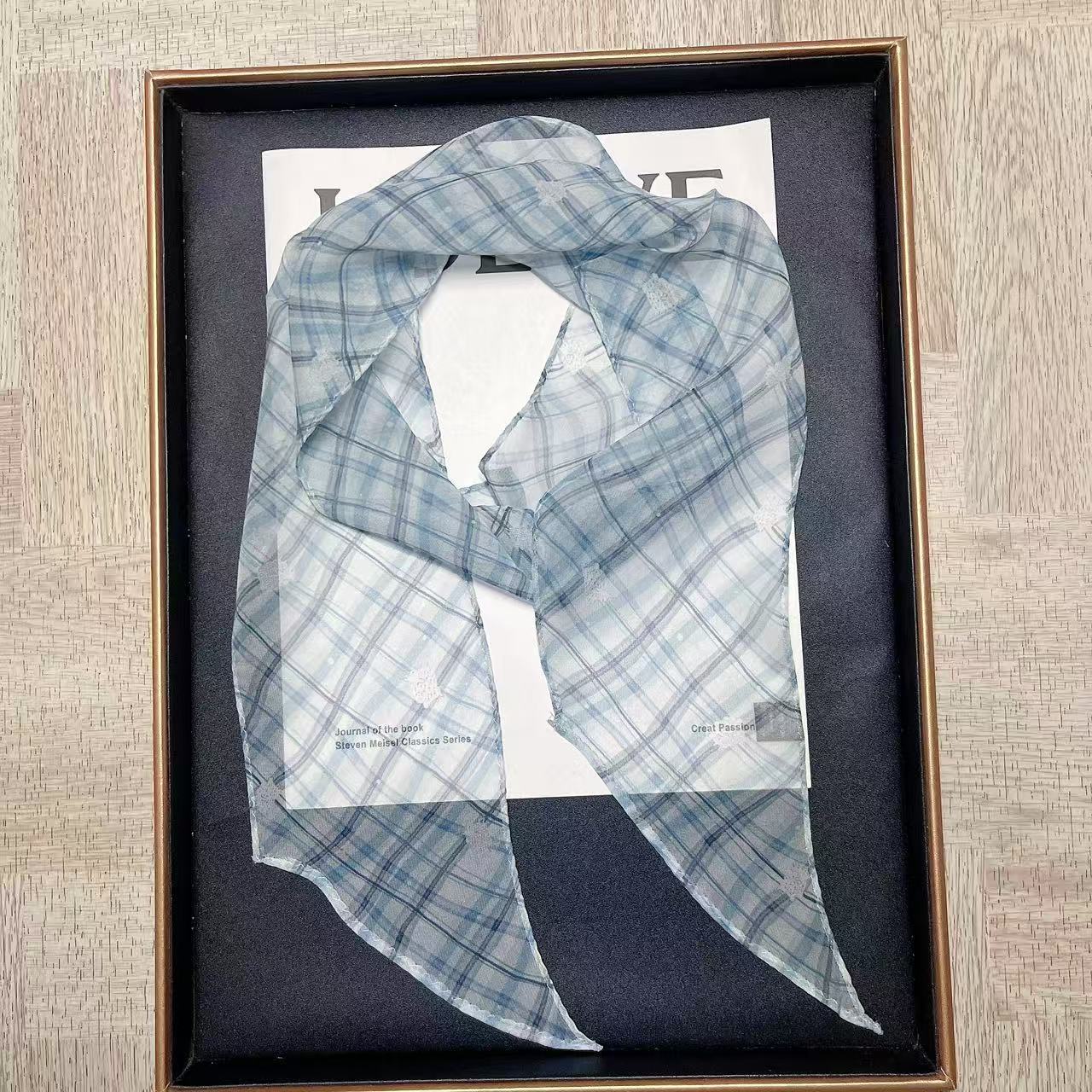 봄, 가을, 여름 새로운 스타일의 갈색 실크 조젯 리본 100% 뽕나무 실크 긴 스카프 여름 헤어 밴드 스카프 여성용스토어 가기