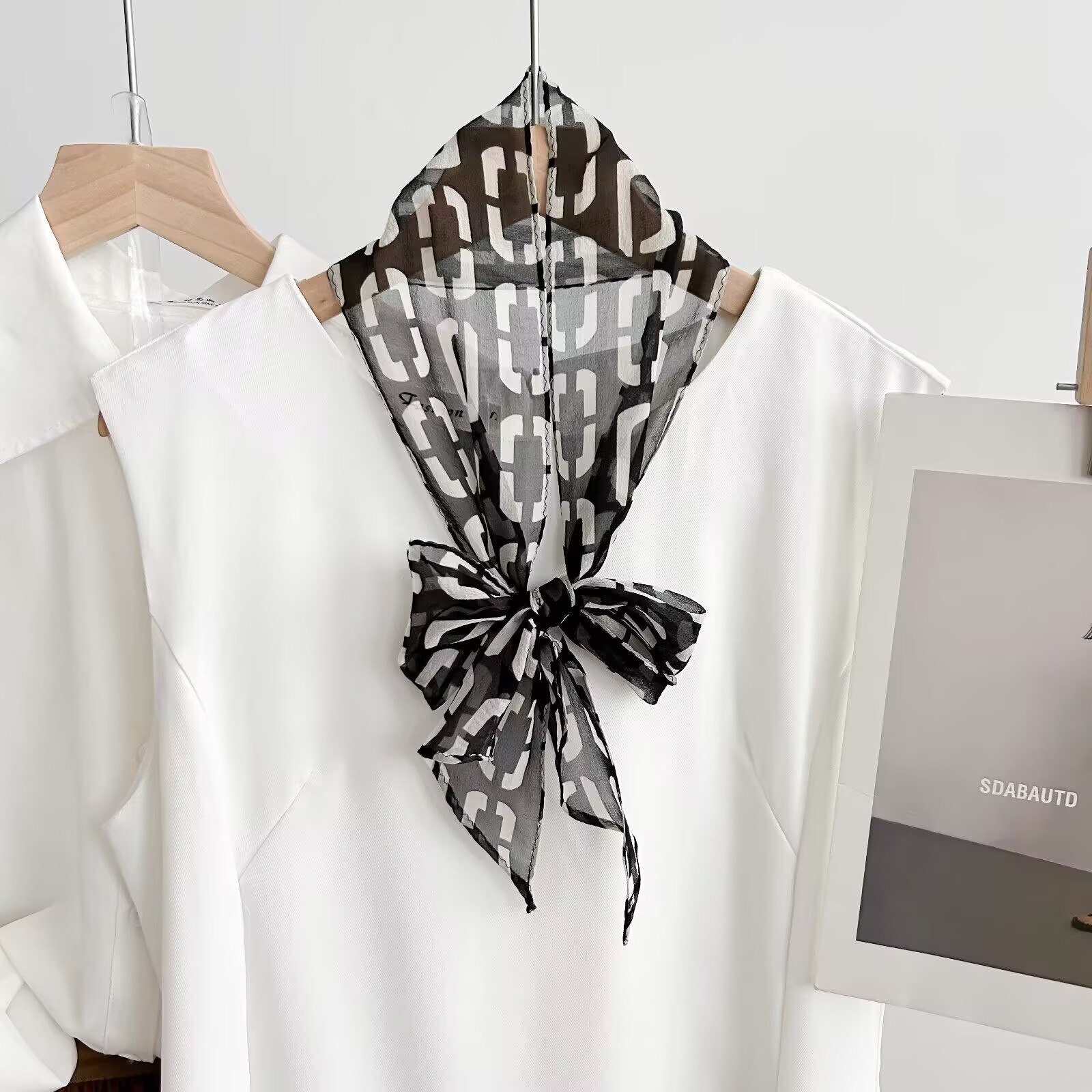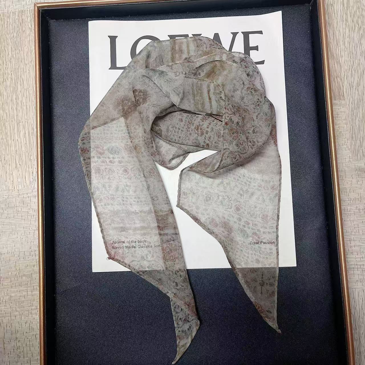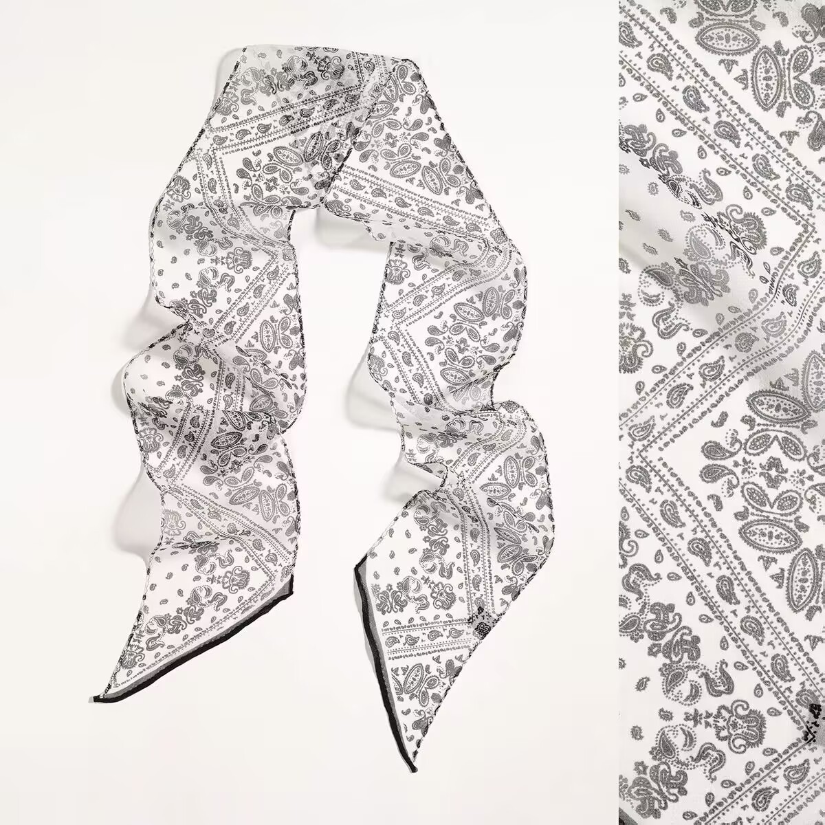 봄, 가을, 여름 새로운 스타일의 갈색 실크 조젯 리본 100% 뽕나무 실크 긴 스카프 여름 헤어 밴드 스카프 여성용스토어 가기