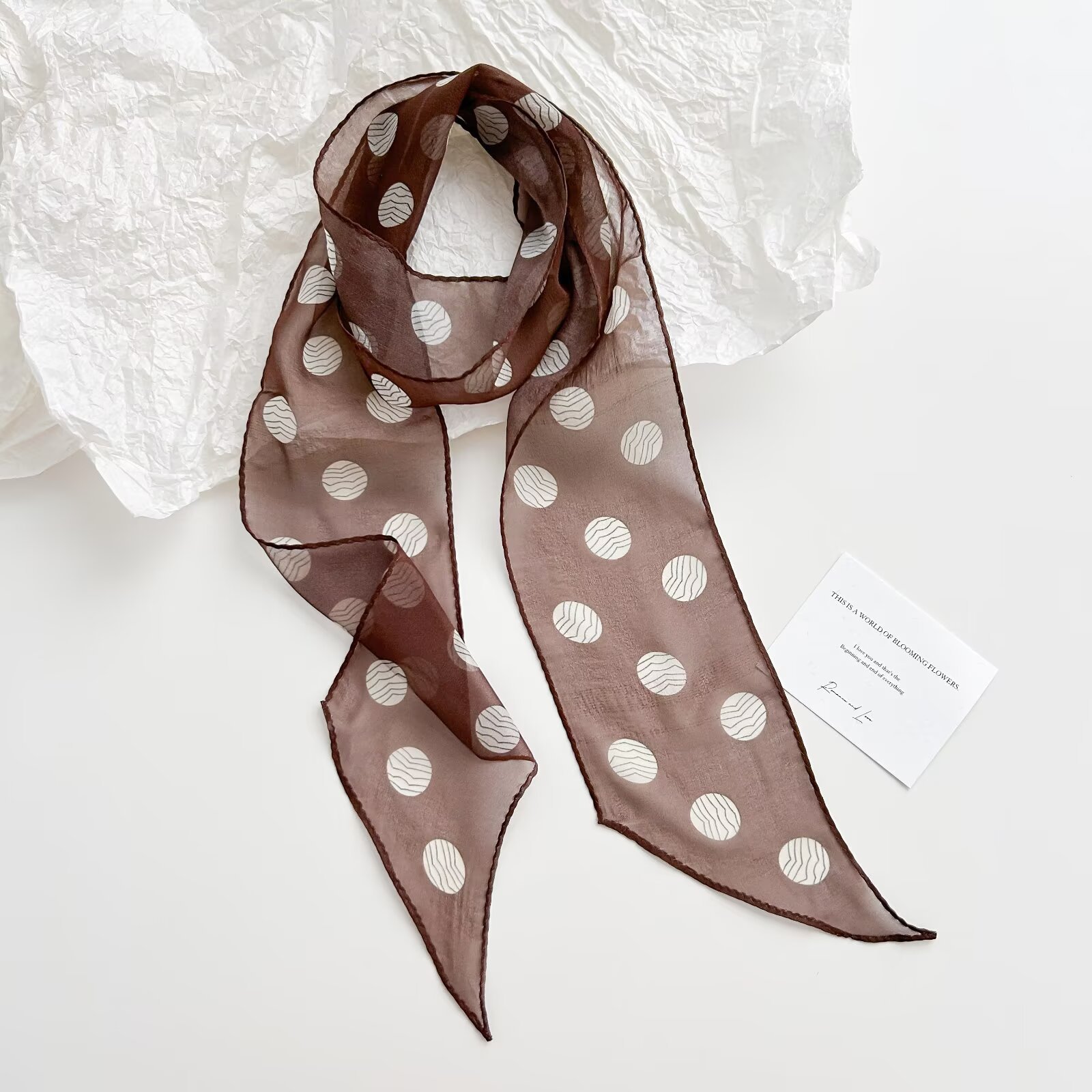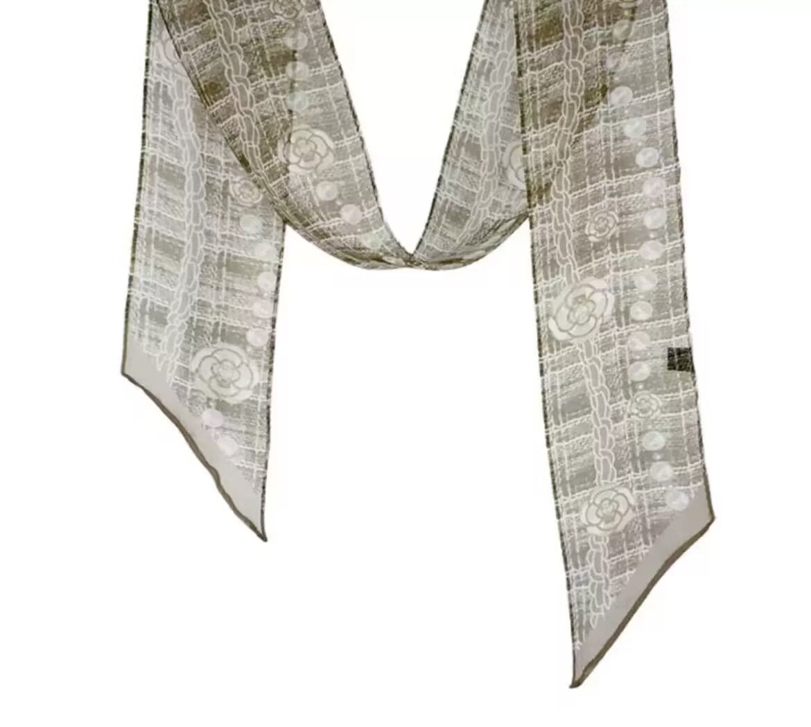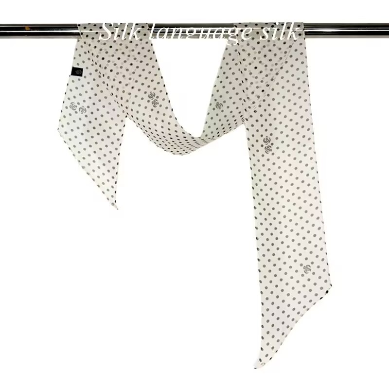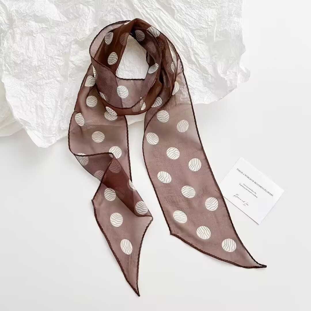 봄, 가을, 여름 새로운 스타일의 갈색 실크 조젯 리본 100% 뽕나무 실크 긴 스카프 여름 헤어 밴드 스카프 여성용