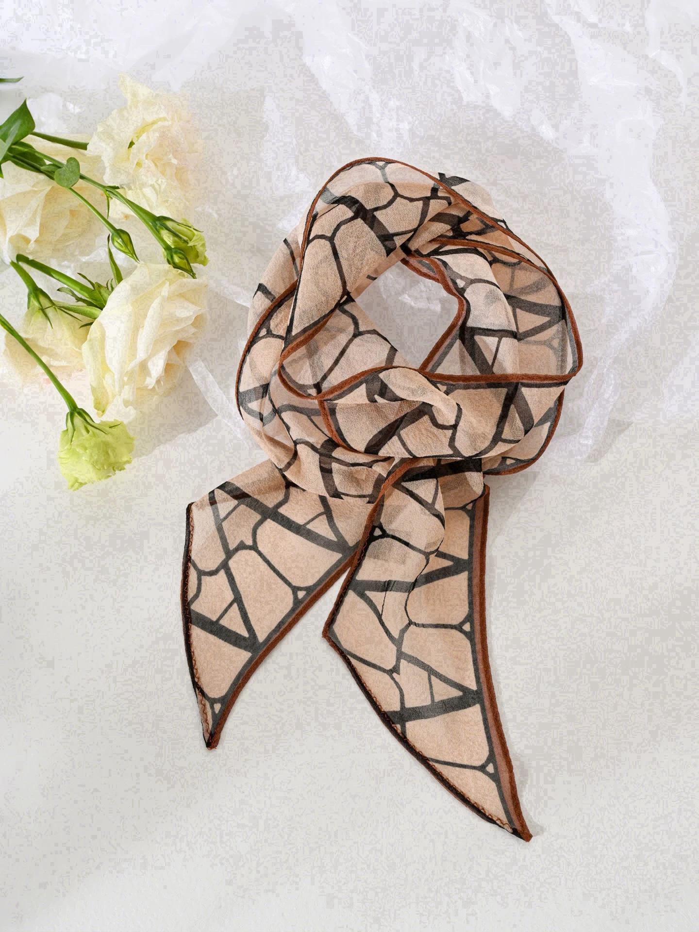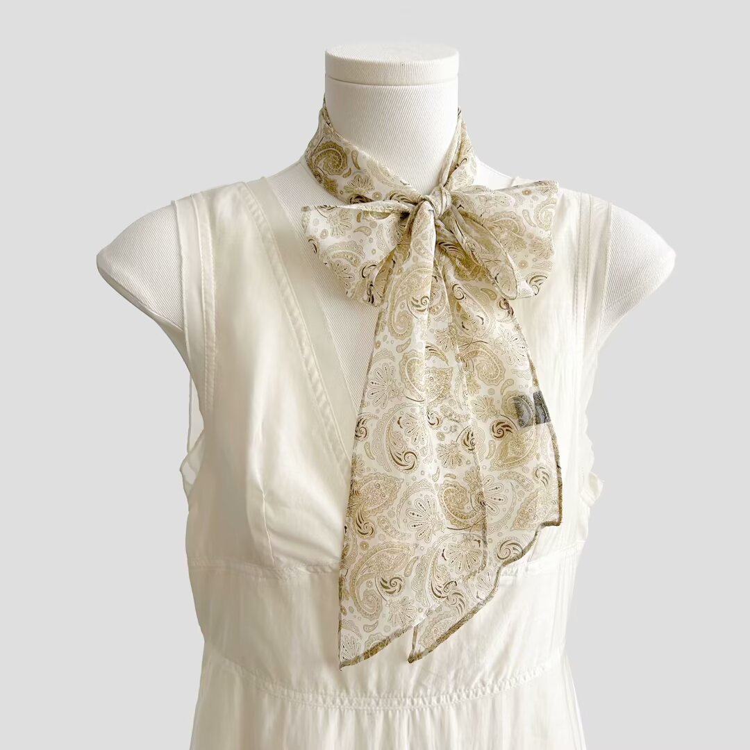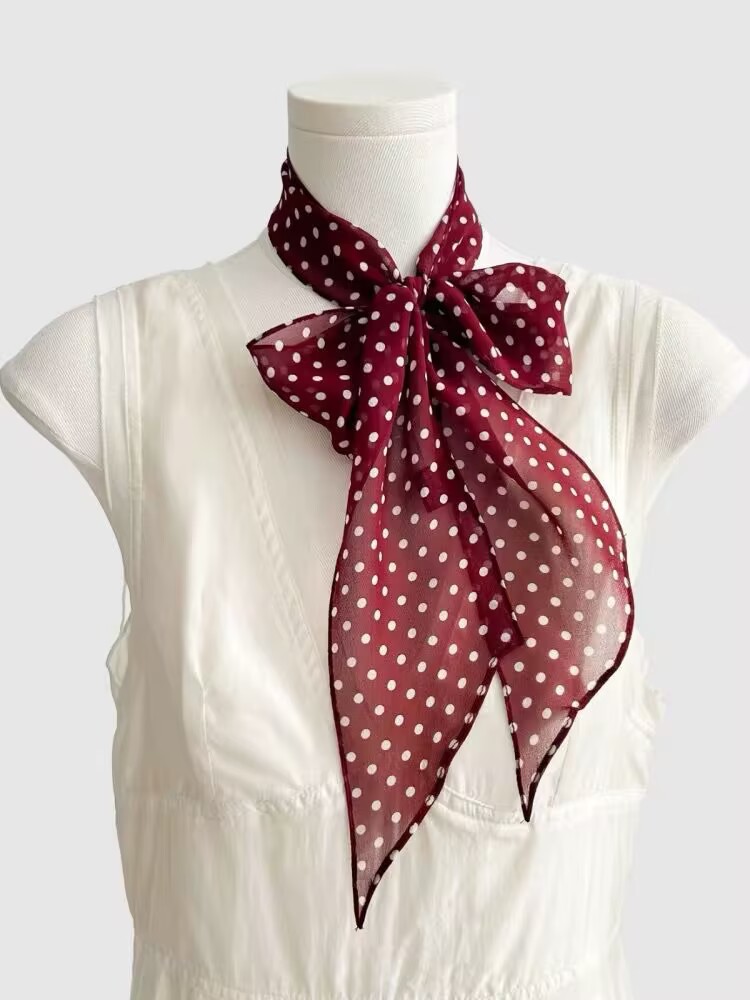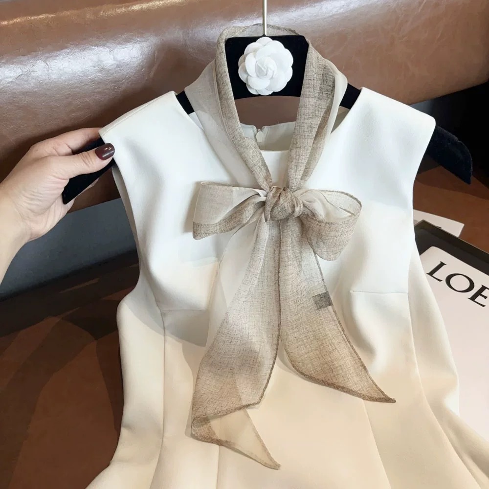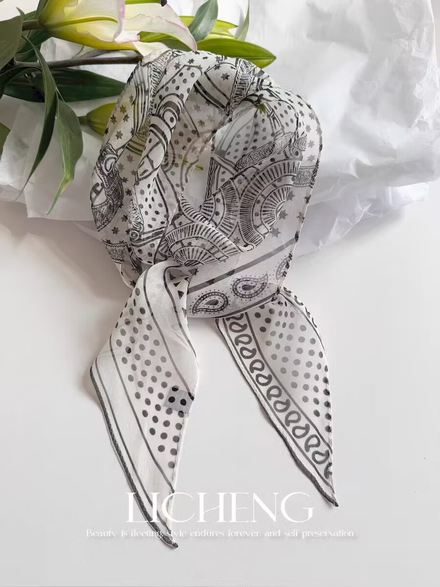 봄, 가을, 여름 새로운 스타일의 갈색 실크 조젯 리본 100% 뽕나무 실크 긴 스카프 여름 헤어 밴드 스카프 여성용