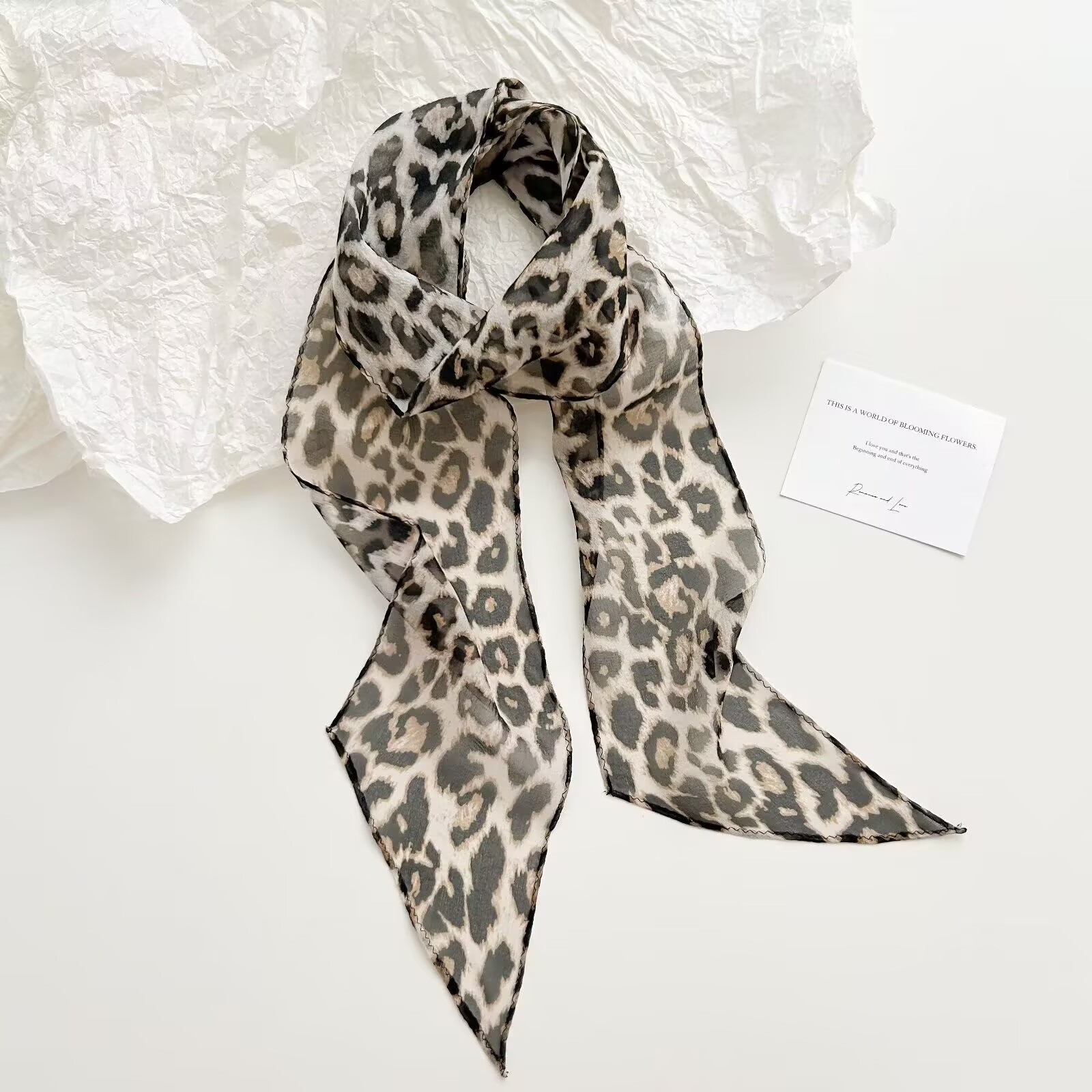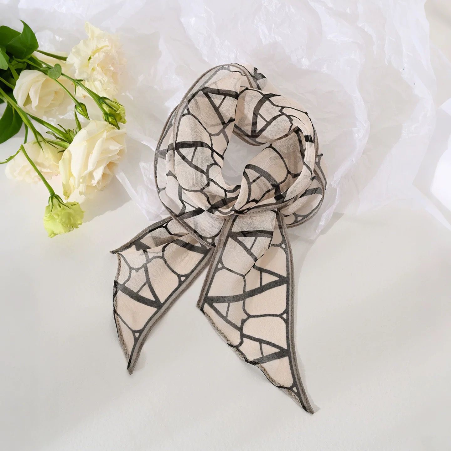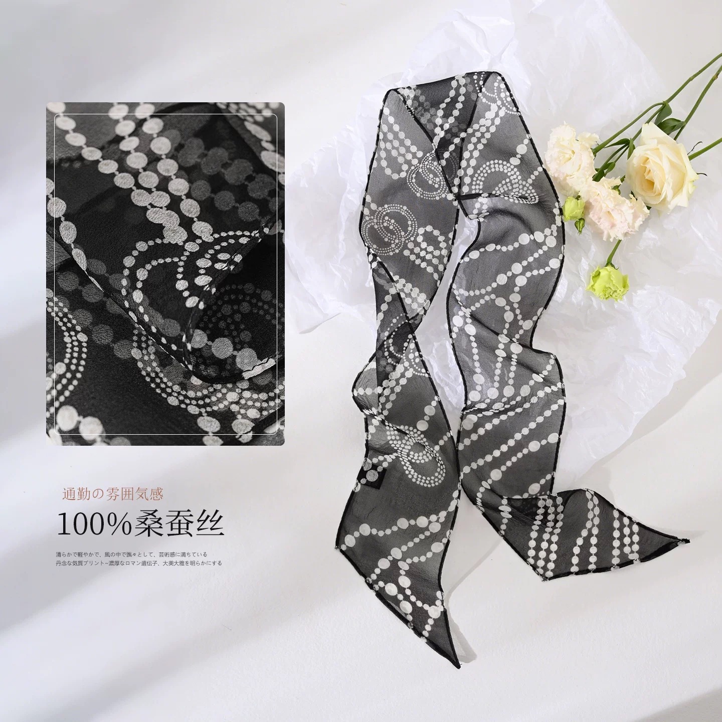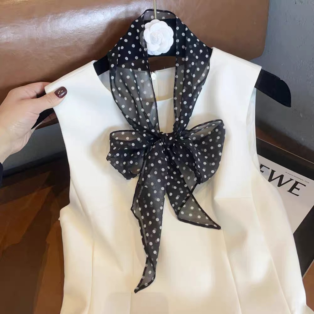 봄, 가을, 여름 새로운 스타일의 갈색 실크 조젯 리본 100% 뽕나무 실크 긴 스카프 여름 헤어 밴드 스카프 여성용