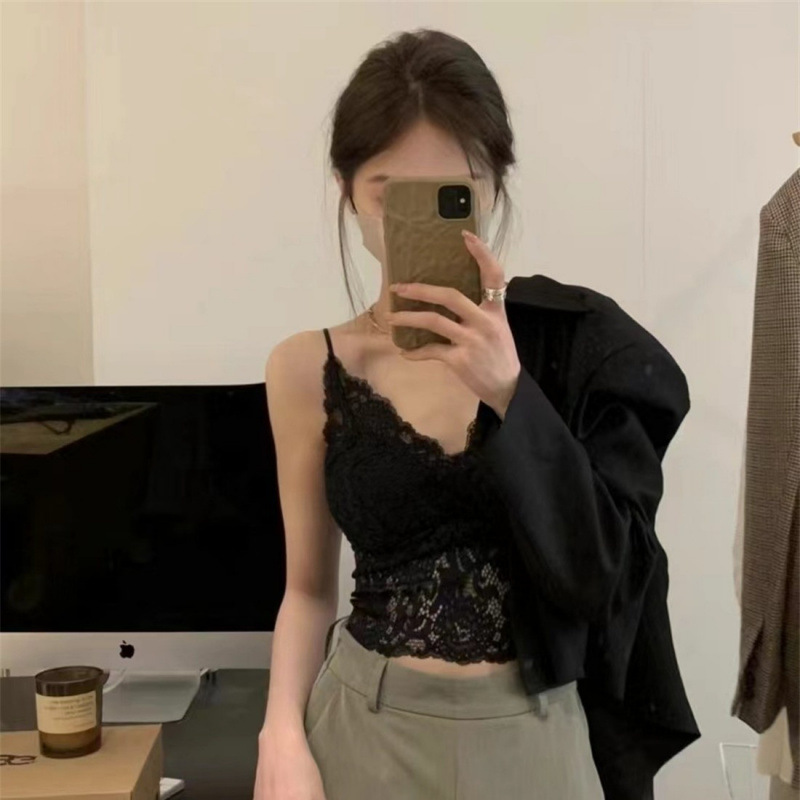 Yingyuxin 프렌치 레이스 캐미솔 여성용 가슴 패드 탑 겉옷 속옷 얇은 아름다운 등 브래지어 올인원스토어 가기