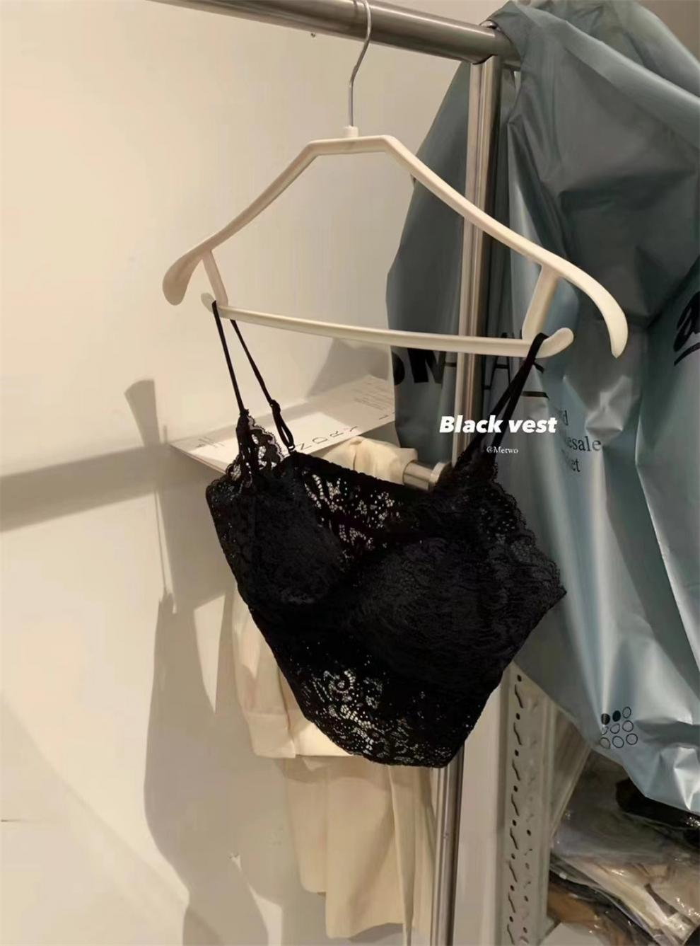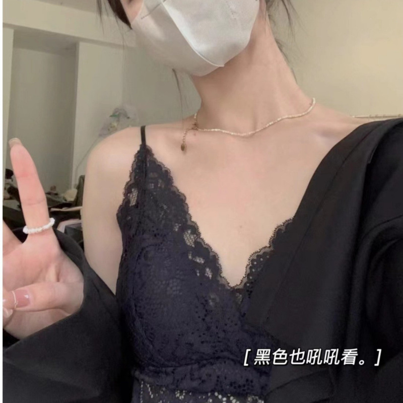 Yingyuxin 프렌치 레이스 캐미솔 여성용 가슴 패드 탑 겉옷 속옷 얇은 아름다운 등 브래지어 올인원