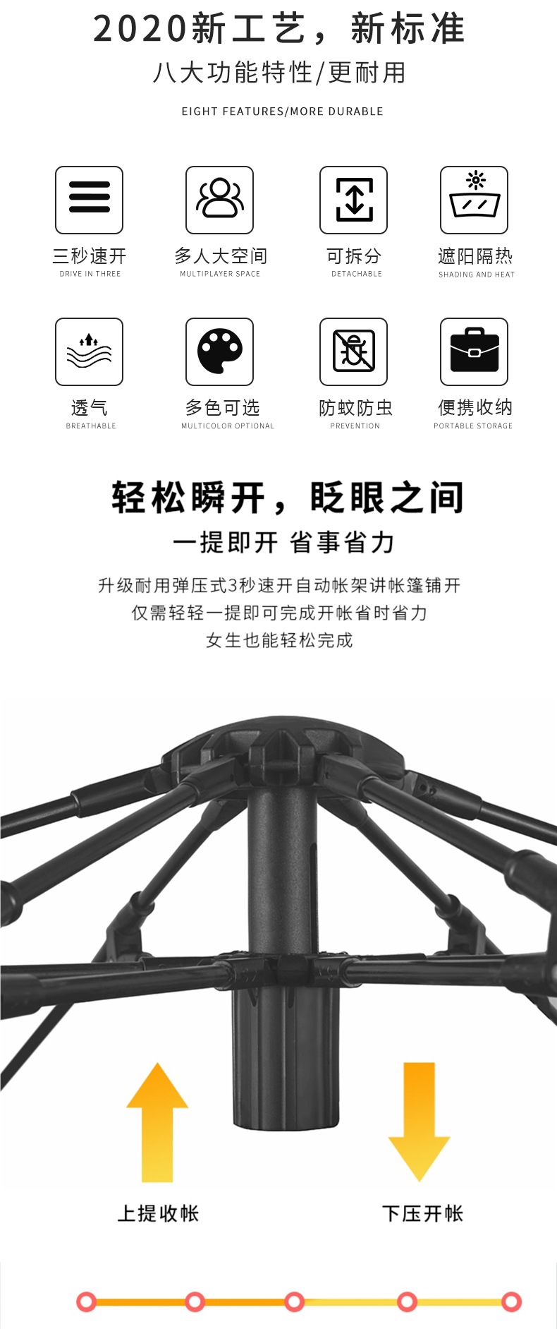 텐트 야외 접이식 휴대용 공원 캠핑 장비 캠핑 밤새 방수 두꺼운 완전 자동 해변 실내스토어 가기
