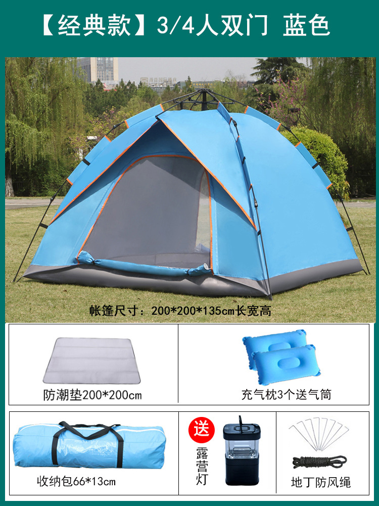 • 2인용 자동 하늘색 + 방습 패드 + 공기주입식 베개(탄성압력 텐트)