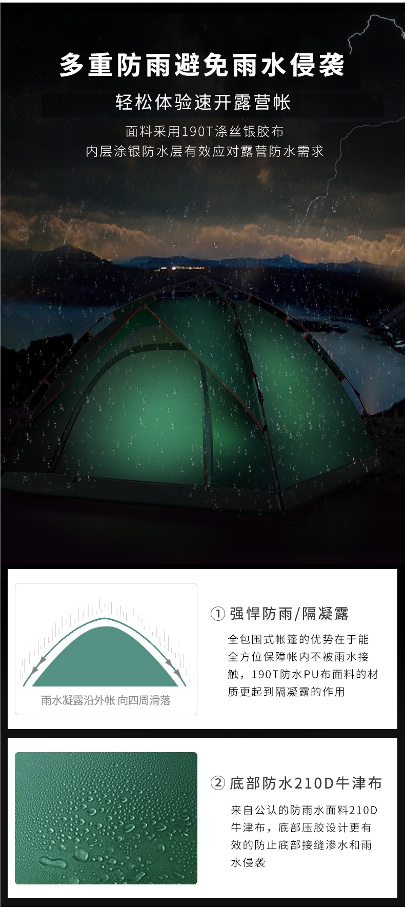 텐트 야외 접이식 휴대용 공원 캠핑 장비 캠핑 밤새 방수 두꺼운 완전 자동 해변 실내