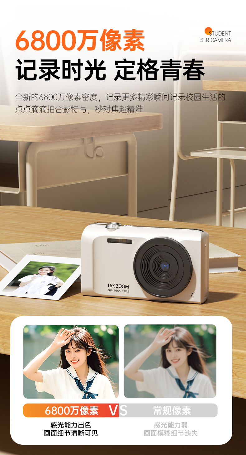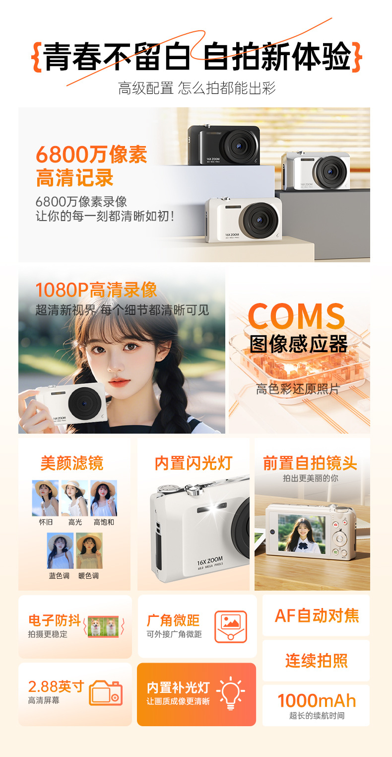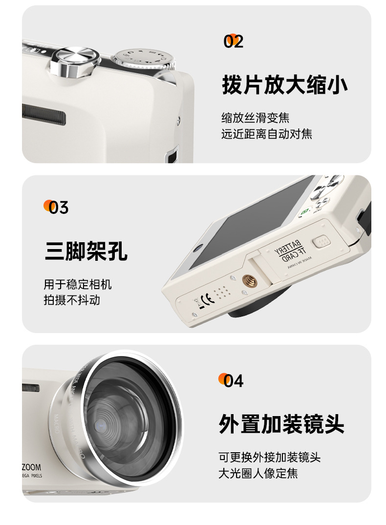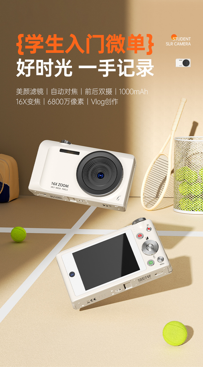 셀프 사진 촬영이 가능한 디지털 카메라, 학생용 입문용 고화질 여행 카메라, 레트로 CCD 휴대용 소형 카드 카메라