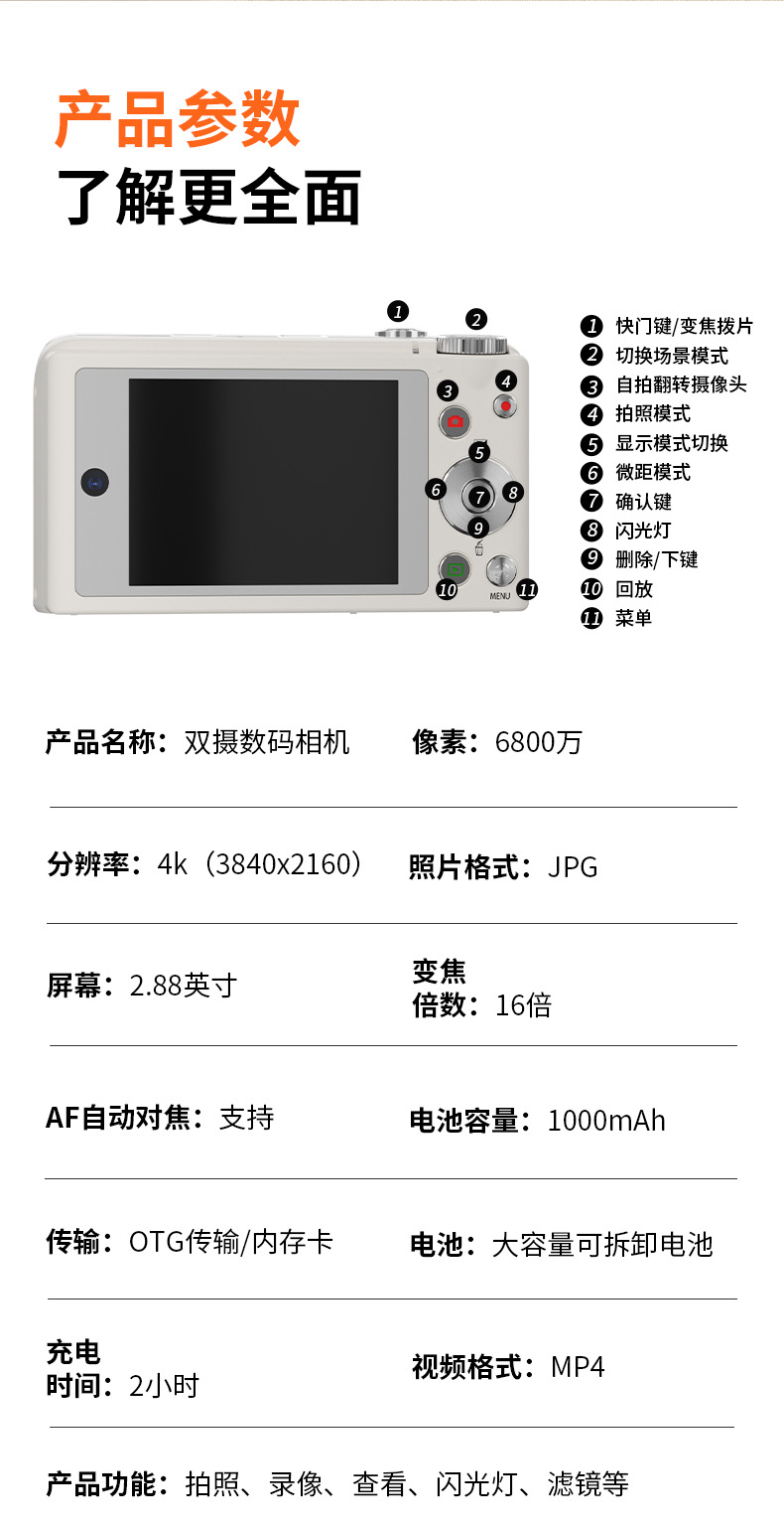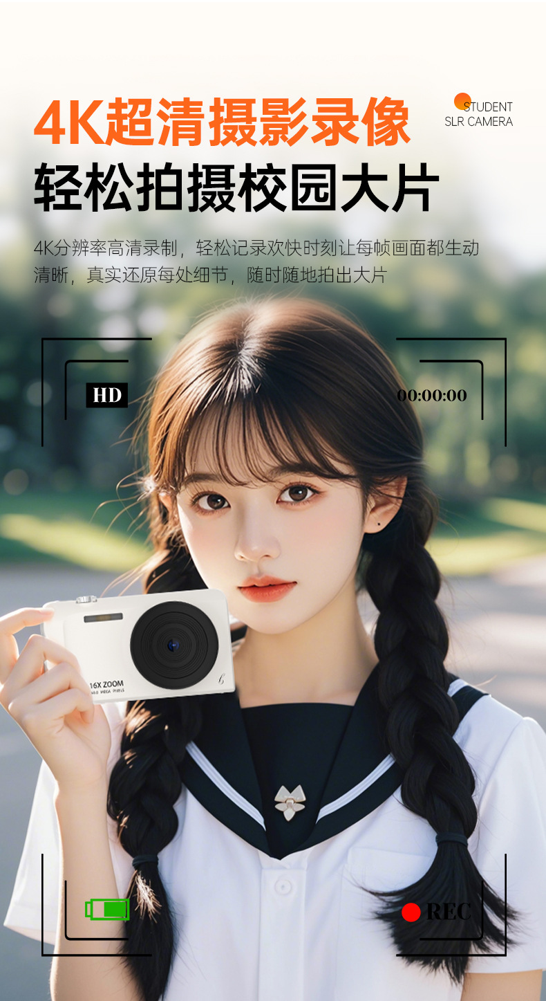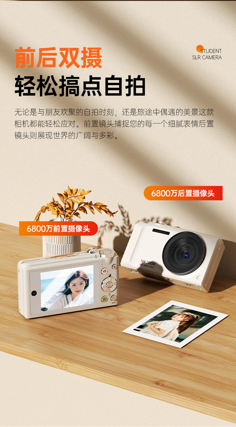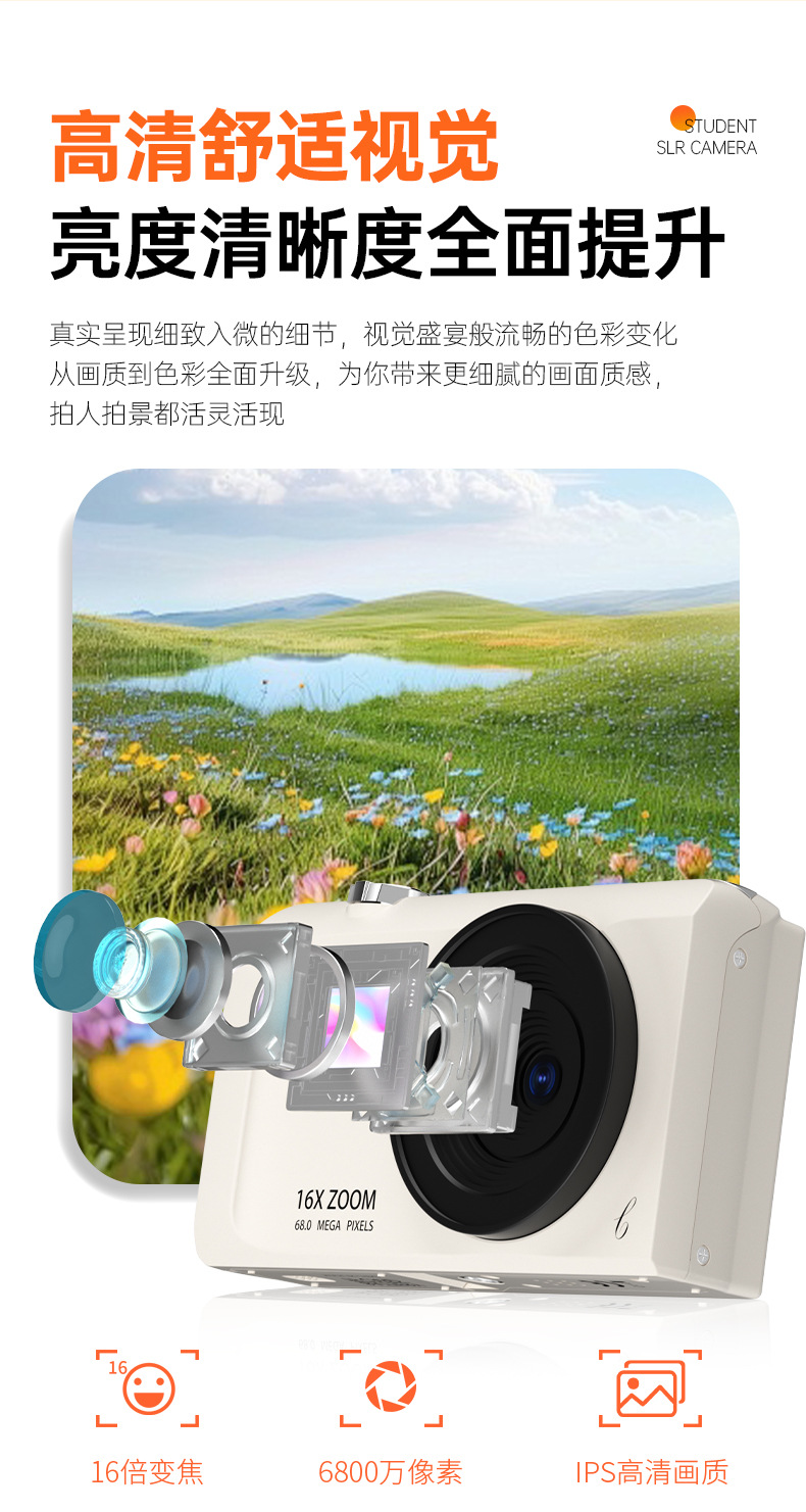 셀프 사진 촬영이 가능한 디지털 카메라, 학생용 입문용 고화질 여행 카메라, 레트로 CCD 휴대용 소형 카드 카메라