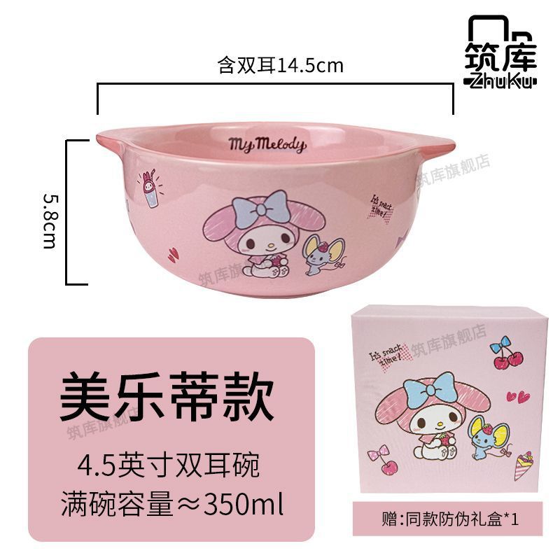 산리오 어린이그릇 쿠로라이스그릇 식기 귀여운 세라믹 양귀그릇 멜로디 먹는그릇 개인용스토어 가기