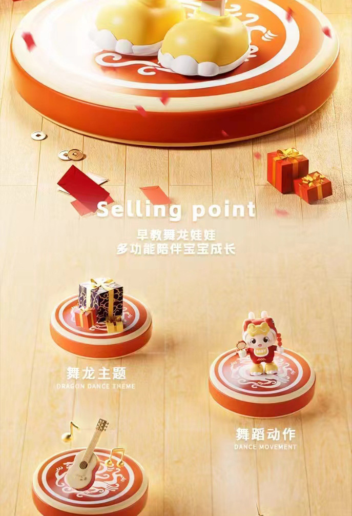 노래하고 춤추는 1세 아기 어린이 장난감 전기 작은 용 아기 월간 헤드업 훈련스토어 가기