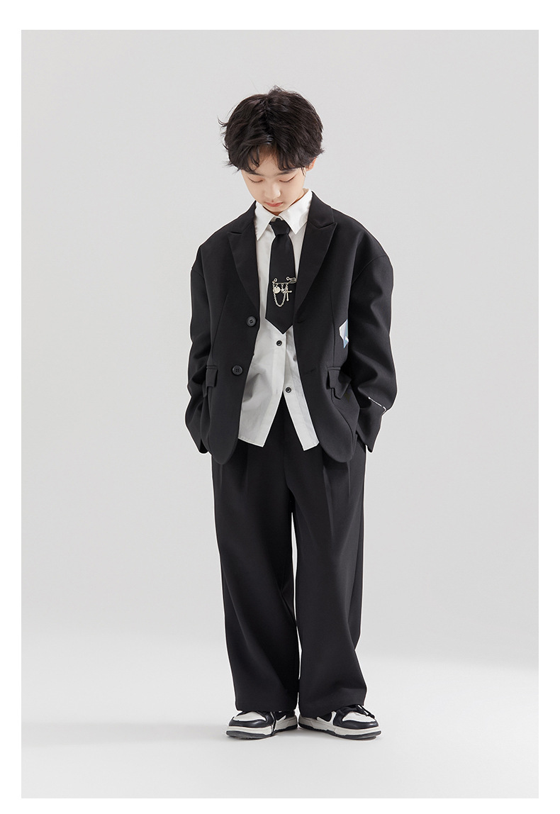 아동복 정장 소년 봄, 가을 의류 2025 새로운 캐주얼 한국 정장 소년 중대형 아동 멋진 드레스스토어 가기