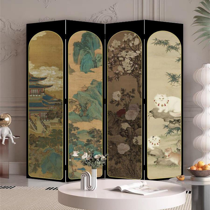 Congruishang 중국 스타일 이동식 차단 홈 장식 양면 스크린 접이식 이동 파티션 거실 사무실스토어 가기