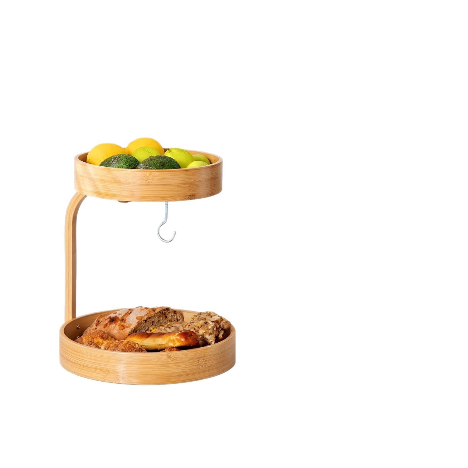 국경 간 단단한 나무 과일 보관 랙 더블 레이어 과일 및 야채 보관 랙 집들이 파티 둥근 말린 과일 접시 단단한 나무 과일 접시