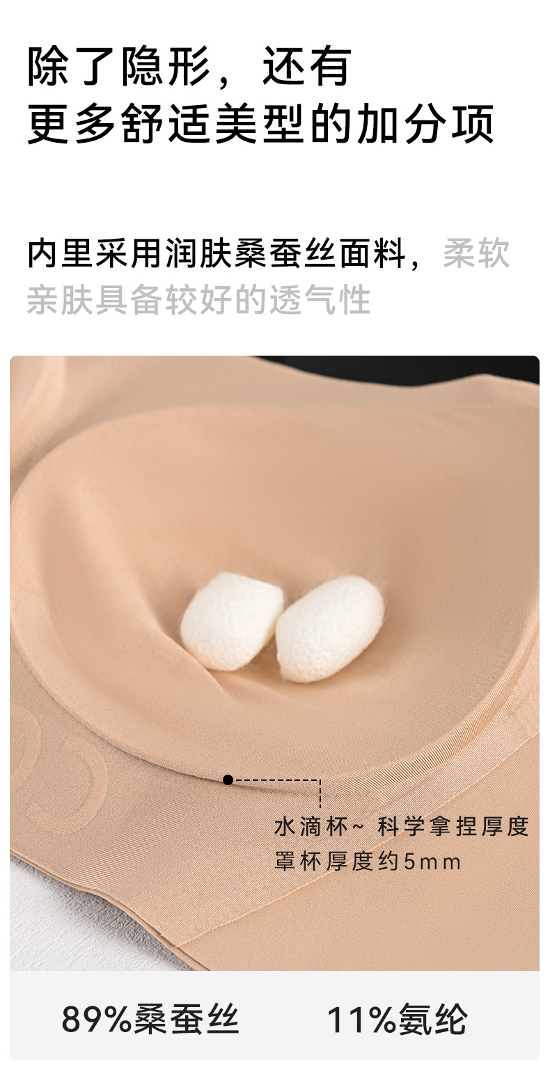 탕거 실크 안티 노출 빅 U 뷰티 백 브라 멀버리 실크 리퀴드 파운데이션 심리스 인비저블 누드 촉감 편안한 속옷