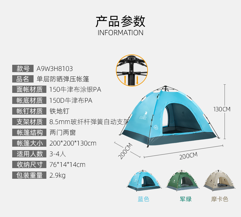 낙타 산 방 텐트 야외 캐노피 휴대용 접이식 자동 방풍 및 태양 보호 텐트 새로운 캠핑 장비 도매스토어 가기