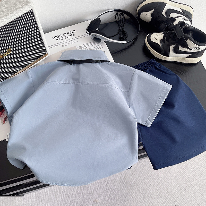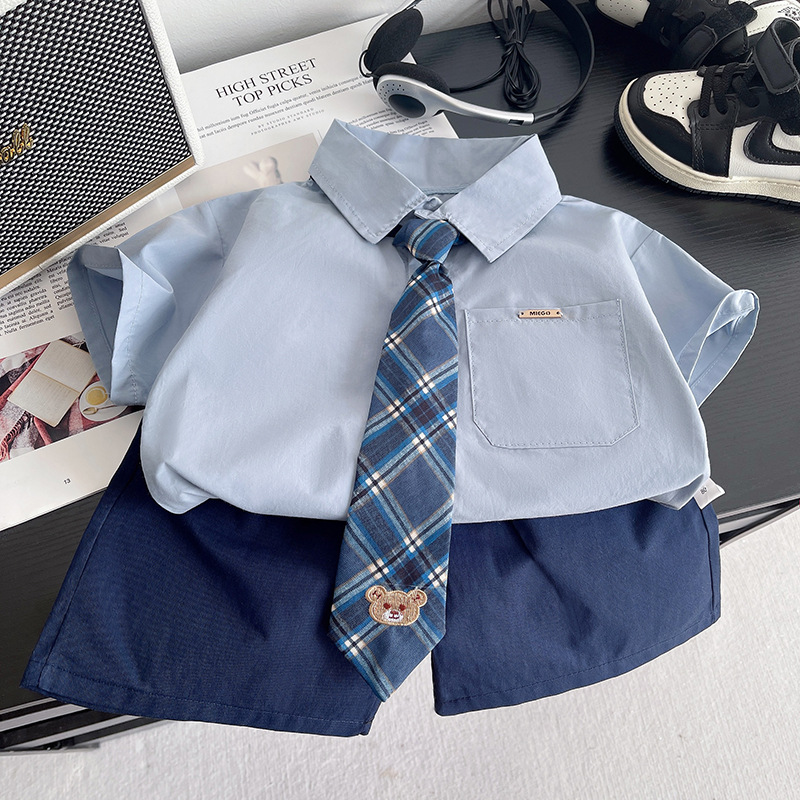 아동복 소년 정장 여름 2025 대학 신작 반팔 셔츠 한국어 버전 아동 투피스 세트 잘 생기고 트렌디함