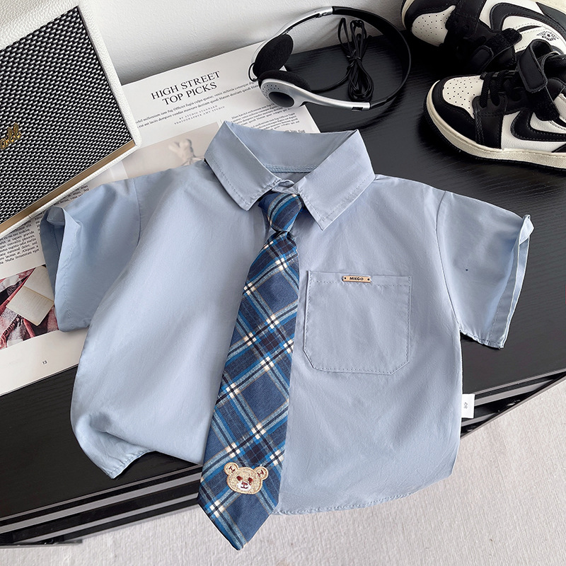 아동복 소년 정장 여름 2025 대학 신작 반팔 셔츠 한국어 버전 아동 투피스 세트 잘 생기고 트렌디함스토어 가기