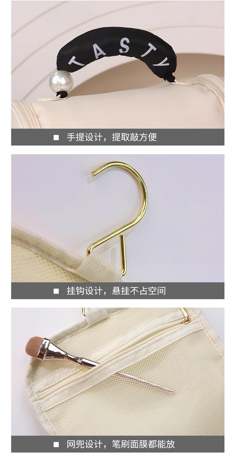 새로운 후크 세면 용품 가방, 고급 휴대용 화장품 가방, 대용량 교수형 보관 가방, 여행용 핸드백