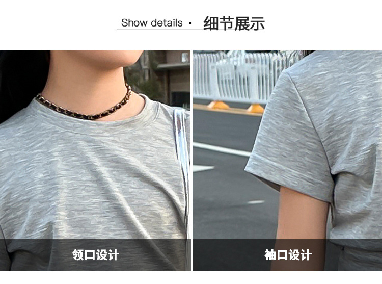 여자 2025 회색 양복 허리 노출 반팔 티셔츠 여름 디자인 캐주얼 바지 와이드 레그 팬츠 달콤하고 시원한 투피스 세트스토어 가기
