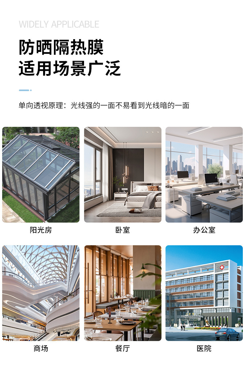 도매 단방향 원근법 단열 유리 필름 태양 보호 유리 스티커 유리 필름 창 발코니 창 스티커스토어 가기