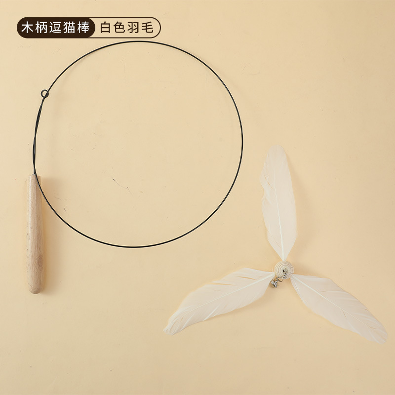 • 나무 손잡이 고양이 놀리는 막대(흰색)