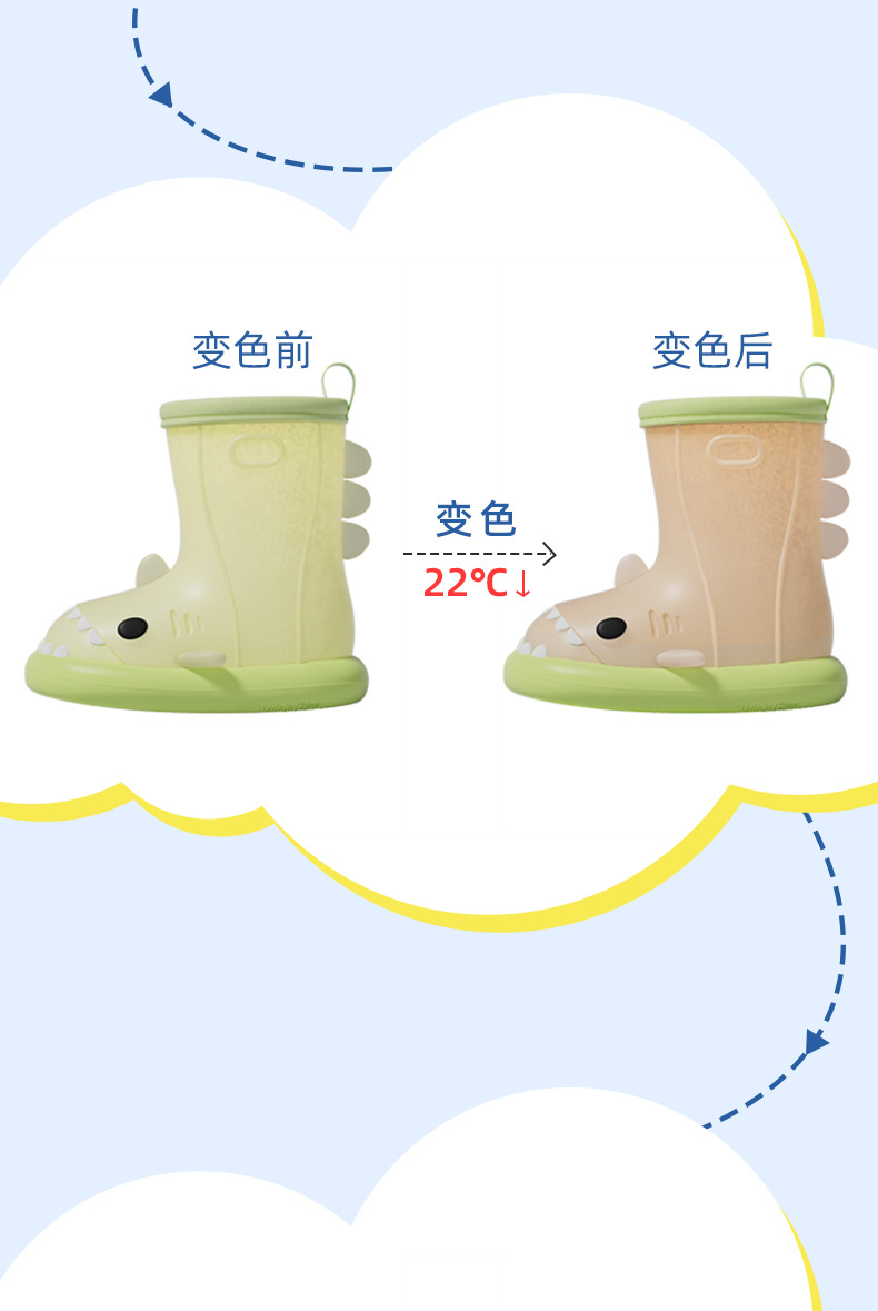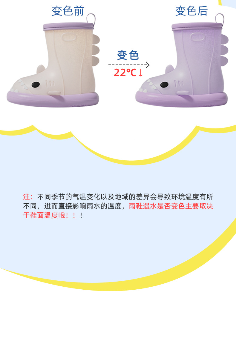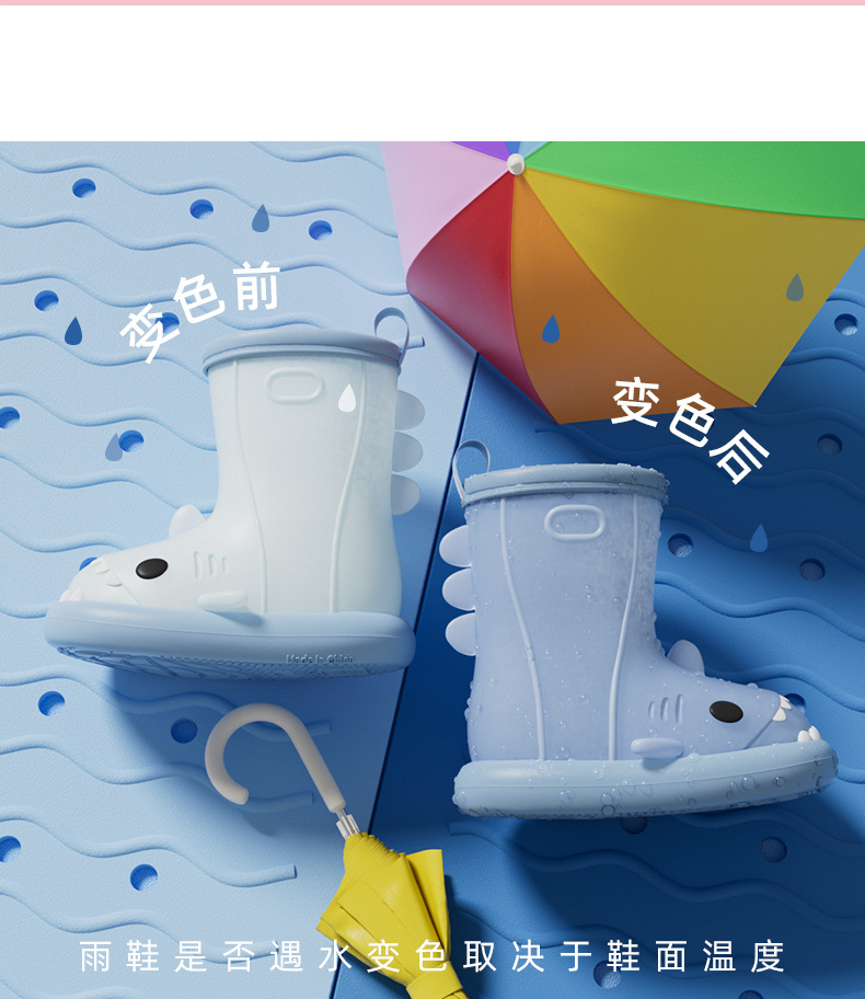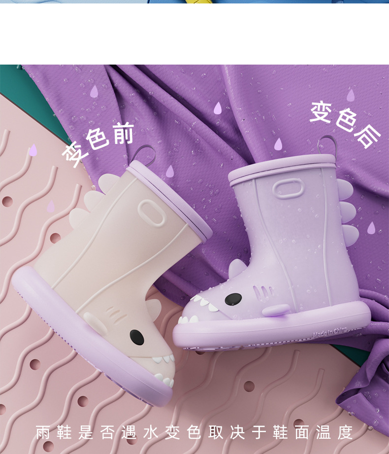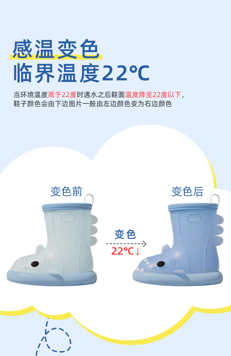 남아 및 여아용 샤크 색상 변경 장화, 만화 유아 및 어린이 장화, 귀여운 아기 야외 고무 신발 및 물 신발