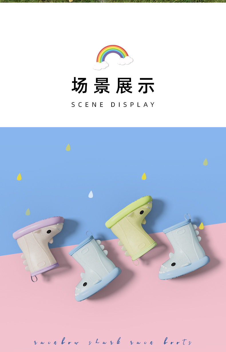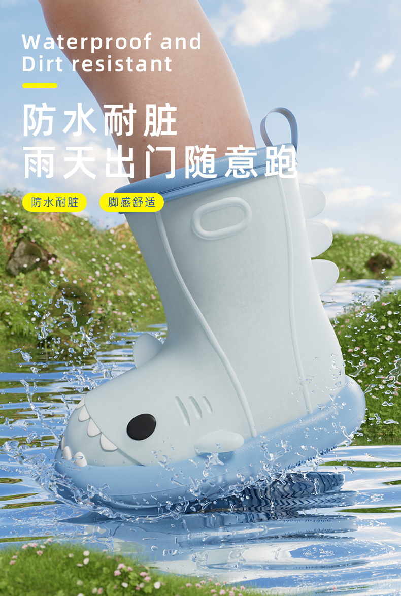 남아 및 여아용 샤크 색상 변경 장화, 만화 유아 및 어린이 장화, 귀여운 아기 야외 고무 신발 및 물 신발스토어 가기
